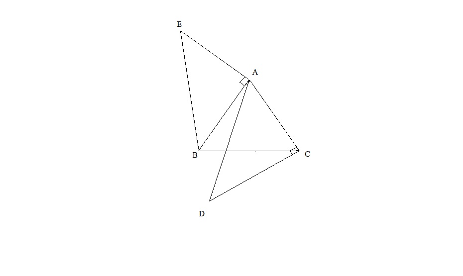 Denovan Posté(e) le 19 mars 2012 Signaler Posté(e) le 19 mars 2012 Bonsoir tout le monde, j'ai un exercice de maths à faire mais j'ai du mal à le résoudre, voici l'énoncé : Soit ABC un triangle équilatéral de sens direct. Soit les points : - E tel que le triangle AEB soit rectangle isocèle en A et de sens direct, - D tel que le triangle CAD soit rectangle isocèle en C et de sens direct. 1° Faire une figure 2° Calculer la mesure principale de l'angle (v(BE); v(BD)). Que peut-on en déduire pour les points B, E et D ? J'espère que quelqu'un pourra m'aider, merci !