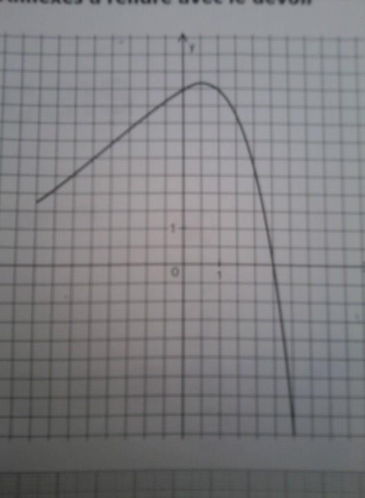 tricot Posté(e) le 17 avril 2012 Signaler Posté(e) le 17 avril 2012 On considère une fonction f définie te dérivable sur l'intervalle [ -4 ; 3 ], et l'on note f' le fonction dérivée de f. La courbe représentative de f est la courbe T donnée en annexe. On admet que la courbe T possède les propriétés suivantes: - La courbe T passe par le point A ( 0 ; 5 ); - La tangente en A à la courbe T passe par le point B ( -2 ; 4 ); - La courbe T admet une tangente parallèle à l'axe des abscisses au point d'abscisse 0,5. En outre, la fonction f est strictement croissante sur l'intervalle [ -4 ; 0,5 ] et strictement décroissante sur l'intervalle [ 0,5 ; 3 ]. 1- Placer les points a A et B et tracer la tangente en A à la courbe T sur la feuille annexe. 2- Déterminer graphiquement le nombre de solutions de l'équation f(x) = 3, et donner pour chaque solution un encadrement par deux entiers consécutifs. 3- a- Donner f'(0) (aucune justification n'est demandée). b- Résoudre l'équation f'(x) = 0. Justifier votre réponse. 4- A l'aide du graphique, résoudre sur [ -4 ; 3 ] l'inéquation f(x) >_ 0. Aidez moi !