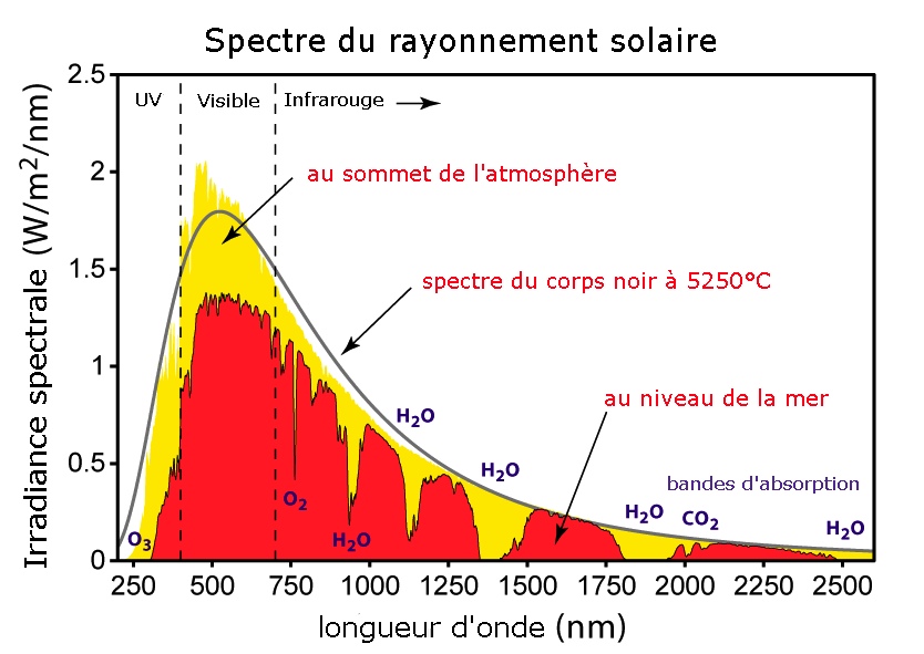 E-Bahut Barbidoux Posté(e) le 17 novembre 2012 E-Bahut Signaler Posté(e) le 17 novembre 2012 1-------------- Le spectre solaire présentant un maximum pour une longueur d'onde de 500 nm explique la raison de ce choix. On retrouve cette longueur d'onde en utilisant la loi de Wien dans laquelle on introduit la température de la surface du soleil ==> lambda= 2898*10^(-6) m/(5.8*10^(3))=5.00*10^(-7)m =500 nm 2-------------- En appliquant la relation L=q*lambda/(2*n)=q*500/3 on obtient q=2 et L=333 nm On choisit donc la composition a=25.5% afin que l'affichage 37° soit visible 3-------------- On calcule le décalage des graphes pour la température 40°C en utilisant les relations : mélange ab L(40)=0.68*L(37) mélange a'b' L(40)=0.74*L(37) On choisit donc la composition a'=33% afin que l'affichage 40° soit le seul visible