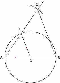 E-Bahut Barbidoux Posté(e) le 9 décembre 2012 E-Bahut Signaler Posté(e) le 9 décembre 2012 1------ Si BC//OJ alors AO/AB=AJ/AC=1/2 ==> AJ=JC 2------ Dans le triangle ABC, OJ est la droite parallèle à CB passant par le milieu de AB (droite des milieux) ==> J est le milieu de AC 3------ Thalès AO/AB=AJ/AC=1/2 4------ JOA est isocèle en O et comme BC//OJ==> ABC est isocèle en B