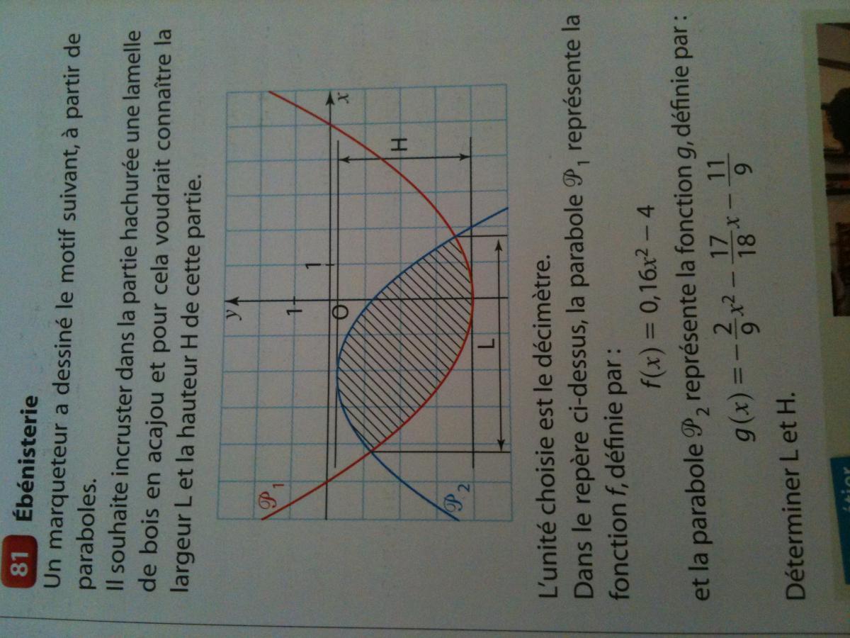 E-Bahut Denis CAMUS Posté(e) le 31 octobre 2013 E-Bahut Signaler Posté(e) le 31 octobre 2013 Vite fait en passant : Cherche les points d'intersection des deux courbes. La différence des abscisses te donnera L. Cherche les coordonnées des sommets. La différence des ordonnées te donnera l. Allez, tu as encore 3 jours et demi pour y arriver.