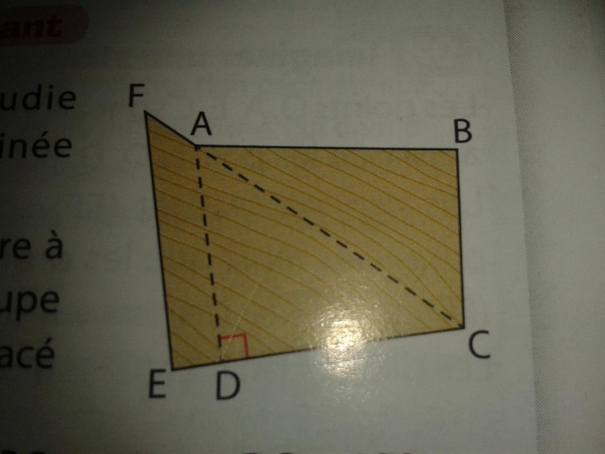 Simon3E Posté(e) le 10 novembre 2013 Signaler Posté(e) le 10 novembre 2013 Ex 1 Le menuisier etudie la plaque de bois desinée ci contre ( Photo ) Il a tracé la perpendiculaire a EC Passant par A elle coupe EC en D . Il a egalement tracé AC Il a mesuré : AB = 115 cm BC=80 cm DC = 100 cm ED = 20 cm AC=140cm AF=28cm a) Le triangle ABC est-il rectangle ? Justifiez . b) Determinez la mesure de l'angle ACD . Aurondir au degrés c) Les droites (AD)& (FE) sont elles paralleles ? Justifiez . Ex 2 Les longueres sont en centimetre On sais que les droites (BC) Et (CE) sont paralleles OB=7.2 OC=10.8 OD=6 CE=5.1 a)Calculez OE puis BD b)On donne OG=2.4 et OF=2 Montrez que GF et BD sont paralleles Merci beaucoup à ceux qui pourrons m'aider ! (L'image de l'ex 1 est en piece jointe)