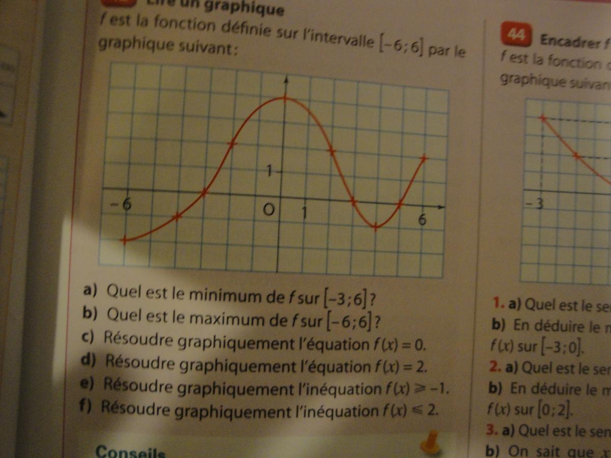 E-Bahut pzorba75 Posté(e) le 17 novembre 2013 E-Bahut Signaler Posté(e) le 17 novembre 2013 e) f(x)-1 S=[-4;6] f) f(x)<=2 S=[-6;2] union [2;6] Bon dimanche.