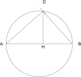 E-Bahut Barbidoux Posté(e) le 15 décembre 2013 E-Bahut Signaler Posté(e) le 15 décembre 2013 /index.php?app=core&module=attach§ion=attach&attach_rel_module=post&attach_id=15618">2.jpeg Le triangle ADB est rectangle en D (triangle inscrit dans un cercla ayant un de ses côtés comme diamètre) Pythagore AB^2=AD^2+DB^2 ==> DB=√(AB^2-AD^2)=√(6^2-4.5^2)=3.97=4.0 cm Par définition - dans le triangle ADB : Sin(ABD)=AD/AB ==> ABD = ArcSin(AD/AB)=48.59°=49° - dans le triangle DHB : Sin(ABD)=Sin(HBD)=DH/DB ==> DH=DB*AD/AB=3.97*4.5/6=2.98=3.0 cm