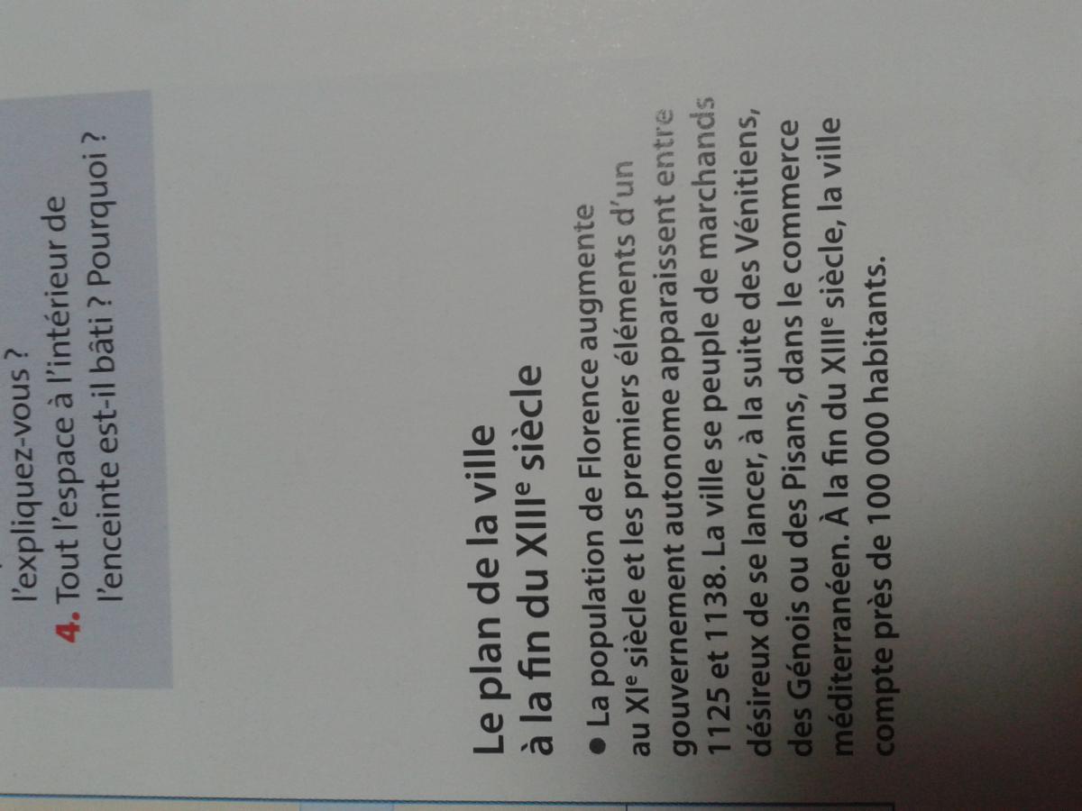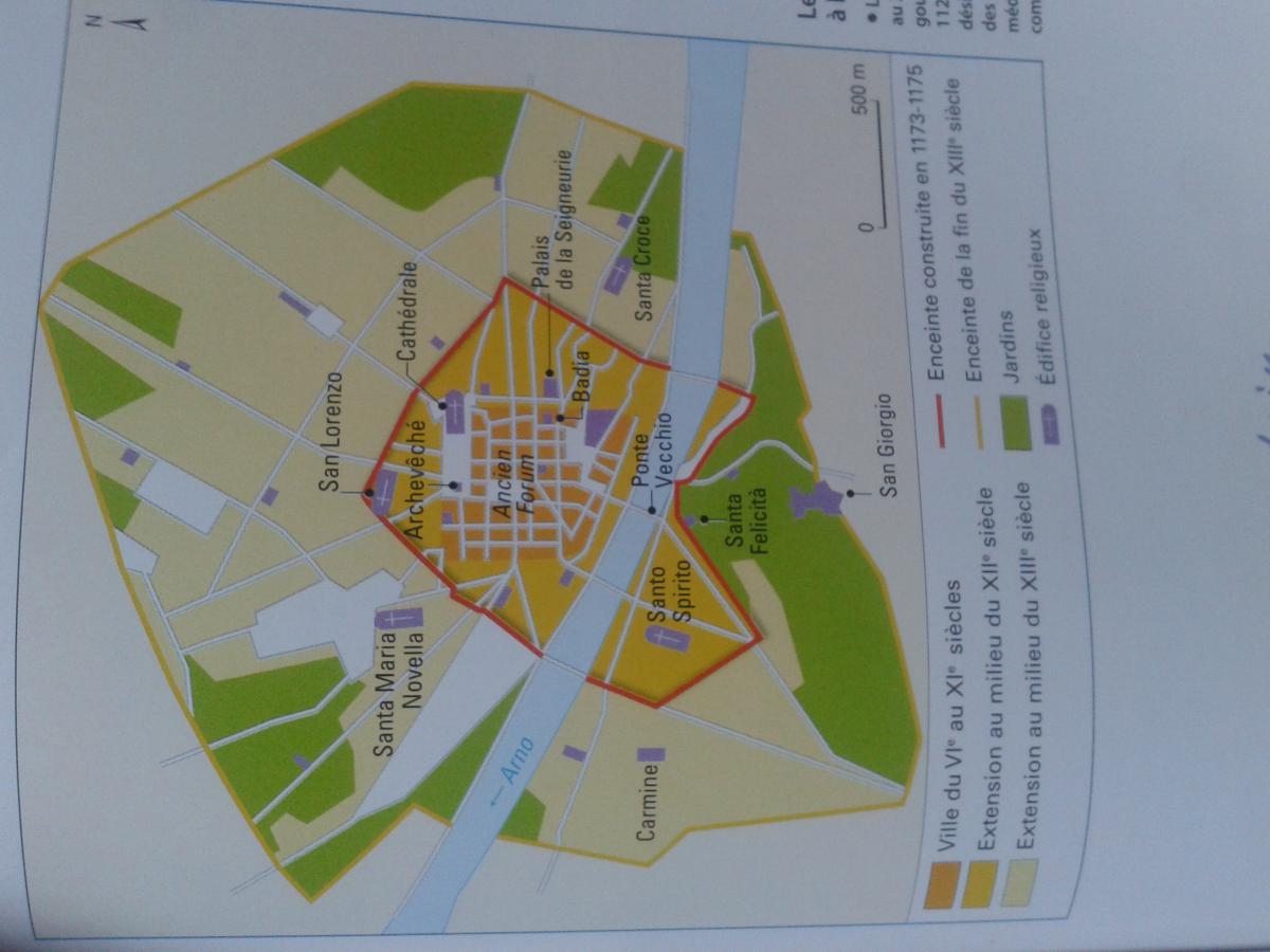 Juuu' Posté(e) le 12 janvier 2014 Signaler Posté(e) le 12 janvier 2014 Questions: 1.Présentez le document et soulignez-en l'intérêt. 2.Retracez l'extension de la ville en décrivant le tracé des rues et en expliquant comment la ville parvient à franchir l'Arno. 3.Quel peut-être l'intérêt de se développer de part et d'autre du fleuve Arno? 4.Où se situent le pouvoirs politiques et religieux?Pourquoi? 5.Expliquez pourquoi l'intégralité de l'espace à l'intérieur de l'enceinte du XIIème n'est pas bâti,contrairement à l'espace situé à l'intérieur de celle du XIIème.
