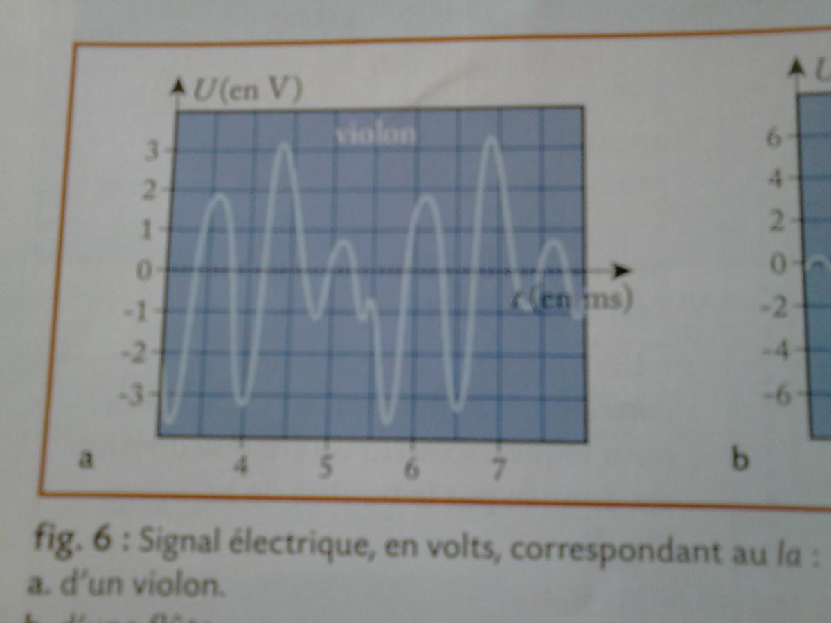 E-Bahut Barbidoux Posté(e) le 29 septembre 2014 E-Bahut Signaler Posté(e) le 29 septembre 2014 Les trois oscillogrammes montrent que les signaux enregistrés ont des fréquence de base voisines, mais chaque signal possède des harmoniques différentes. Un son, non pur, possède plusieurs harmoniques de différentes fréquences et la richesse d'un son en harmonique caractérise le timbre d'un instrument et fait qu'un la joué par un violon ou une trompette n'a pas la même timbre, bien que la note jouée soit la même.