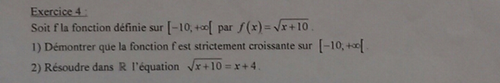 ginnoanna83 Posté(e) le 12 octobre 2014 Signaler Posté(e) le 12 octobre 2014 VOICI un peit Dm , ( au passage Merci à Barbidoux) pour la question 1 , il ne faut pas utiliser les limites , mais juste avec la demonstration de la fonction √x , voila ce que j'ai mit ; a et b appartient a [-10, +in[ tel que a<b alors a+10<b+10 et √(a+10)<√(b+10) la fonction racine est croissante donc la fonction est croissante 2) la numero 2 je l'ai faite ^^ meric d'avance