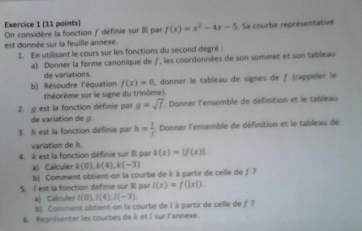 E-Bahut pzorba75 Posté(e) le 21 octobre 2014 E-Bahut Signaler Posté(e) le 21 octobre 2014 Cet exercice, c'est quasiment du cours, sauf peut-être |f(x)|, là il faut se souvenir de la définition de valeur absolue : |f(x)|=f(x) si f(x)>=0 et |f(x)|=-f(x) si f(x)<0. À toi de travailler.