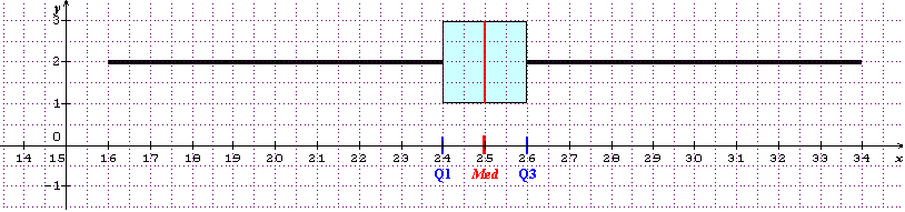 E-Bahut Papy BERNIE Posté(e) le 5 décembre 2014 E-Bahut Signaler Posté(e) le 5 décembre 2014 Bonjour, moi, je te conseille de télécharger le logiciel gratuit Sine Qua Non ici : http://patrice.rabiller.pagesperso-orange.fr/SineQuaNon/menusqn.htm Puis tu cliques sur : Définir/Série statistique simple et tu cherches à comprendre comment ça marche. 1) J'ai rentré la série concernant A : même moyenne que toi. Je n'ai pas vérifié B où je suppose que tu as bon aussi. vérifie toute seule avec Sine Qua Non. Mais tu as faux pour l'étendue qui est la différence entre la plus grande valeur et la plus petite ( le poids donc). Pour A : étendue =34-16=18 Pour B : étendue =32-18=16 L'étendue est plus petite pour B donc cette machine fournit des sachets de poids plus homogènes ( de poids moins aberrants, de poids moins éloignés du poids de 25 g souhaité ). 2) La médiane est la valeur comprise entre la 500ème et la 501ème valeur mais ton nb "25" est bon d'après Sine Qua Non. OK pour Q1 : 250ème valeur et Q3: 750ème valeur. Sine Qua Non donne Q1=24 et Q3=26 . Tu dois avoir un nb entier. Vérifie tes réponses. 3) La boîte de A en pièce jointe ( la plus à droite ci-dessous) qui te donnera une idée de ce que tu dois faire. J'ai rentré la machine B dans Sine Qua Non finalement qui donne : moyenne =25.036 Q1=23 Médiane=25 Q3=26 Diagramme en boîte de B joint ( la plus à gauche) : 4) Il faut que Q3 soit 24 . Sur les 2 diagrammes en boîte , cette valeur est respectée.