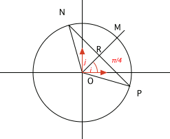 E-Bahut Barbidoux Posté(e) le 1 avril 2015 E-Bahut Signaler Posté(e) le 1 avril 2015 Le triangle NOP est isocèle MR est sa hauteur et la médiatrice de NP ==> POM=MON. Dans le triangle RON rectangle en R on a Cos(RON)=1/2 ==> RON=π/3 d'où iON=iOR+RON=π/4+π/3=7*π/12 et POi+iOR=POR=π/3 ==> iOP=π/4-π/3=π/12