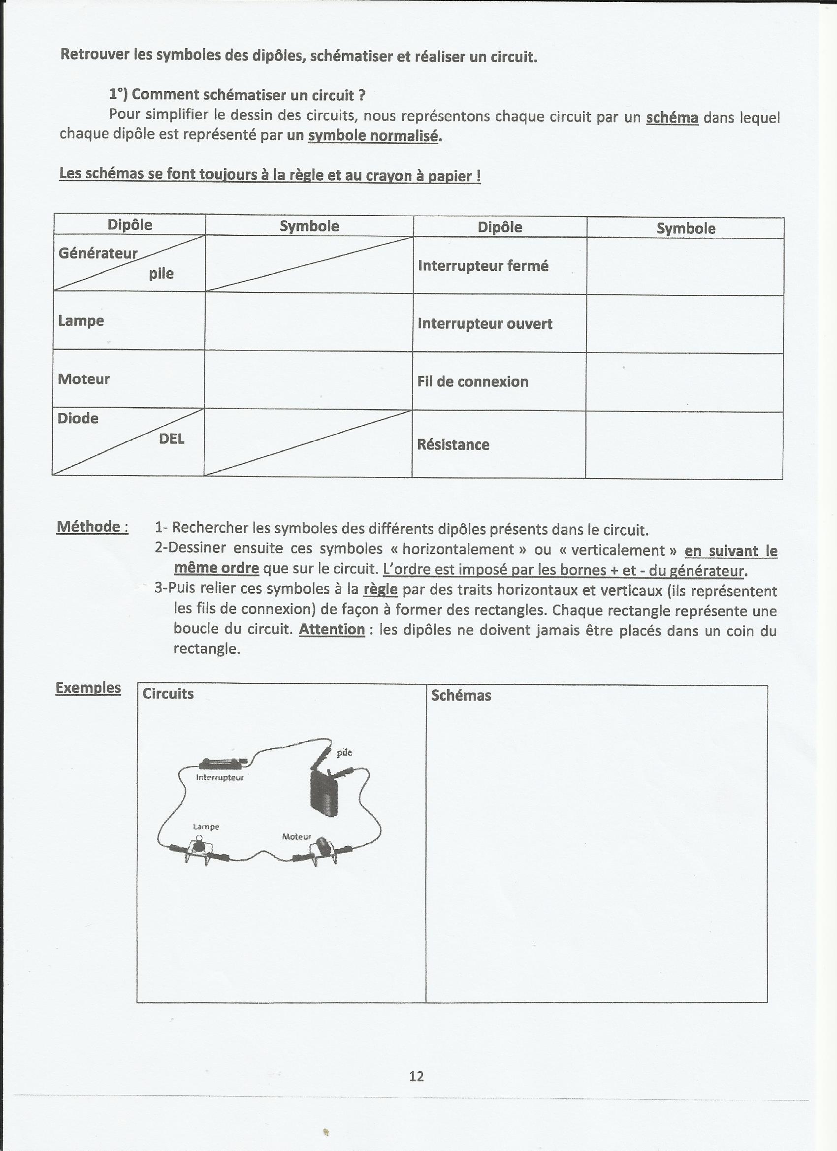 Olivier0507 Posté(e) le 21 octobre 2015 Signaler Posté(e) le 21 octobre 2015 As-tu seulement essayé ? Ce sont des exercices de cours, l'intégralité des réponses s'y trouve dedans. Le seul exercice d'application est le dernier pour lequel voici quelques indications : - Lorsqu'un circuit est ouvert le courant ne circule pas, la tension est donc nulle aux bornes des dipôles, des fils de connexion et des interrupteurs mais elle ne l'est pas au borne du générateur. - Lorsque le circuit est fermé, le courant circule. La tension est nulle aux bornes d'un fil de connexion et d'un interrupteur, non nulle dans les autres cas.