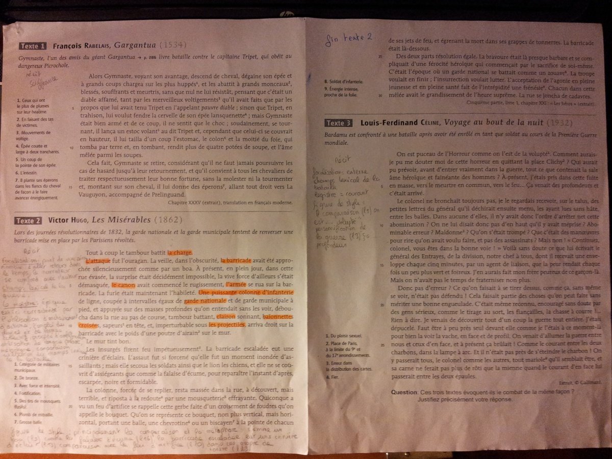 piquer Posté(e) le 27 octobre 2015 Signaler Posté(e) le 27 octobre 2015 Quelqu'un pourrait t il me dire quel est l intention des auteurs ? j ai mis que celine et rabelais font une critique de la guerre mais je ne suis pas sure du tout Pouriez vous également m aider sur le style narrative j ai mis que hugo et rabelais optent plutot pour une focalisation zéro et celine interne mais la aussi je doute vraimentMerci pour ceux qui m aideront
