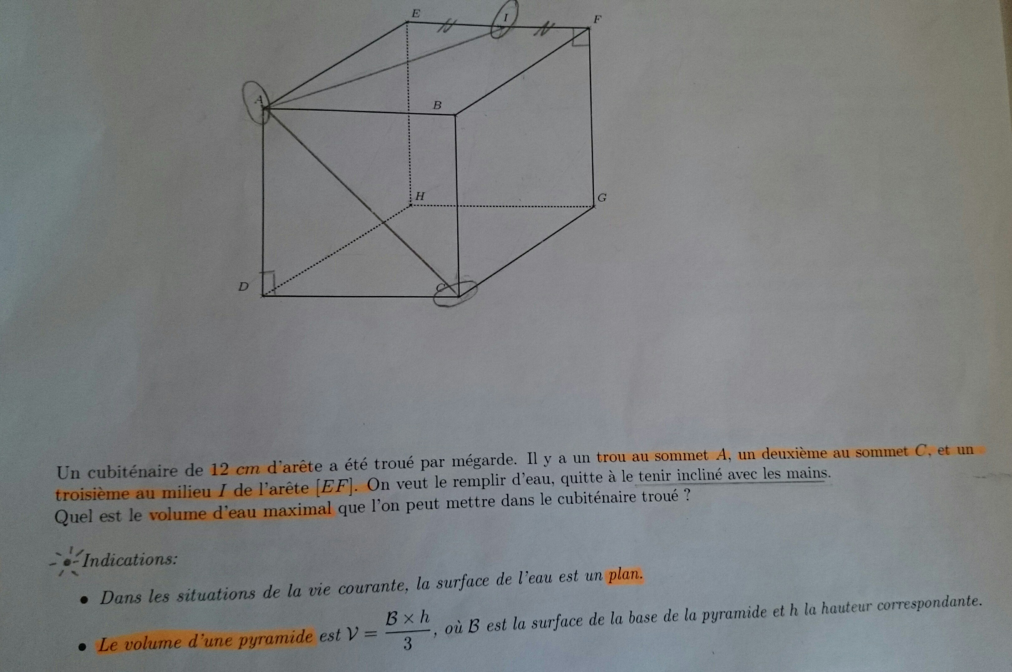 E-Bahut Boltzmann_Solver Posté(e) le 1 novembre 2015 E-Bahut Signaler Posté(e) le 1 novembre 2015 Ce n'est pas la bonne forme. Prends en photo le cube bien orienté. Ensuite, il faut que tu arrives à trouver la surface libre de l'eau dans le cube.