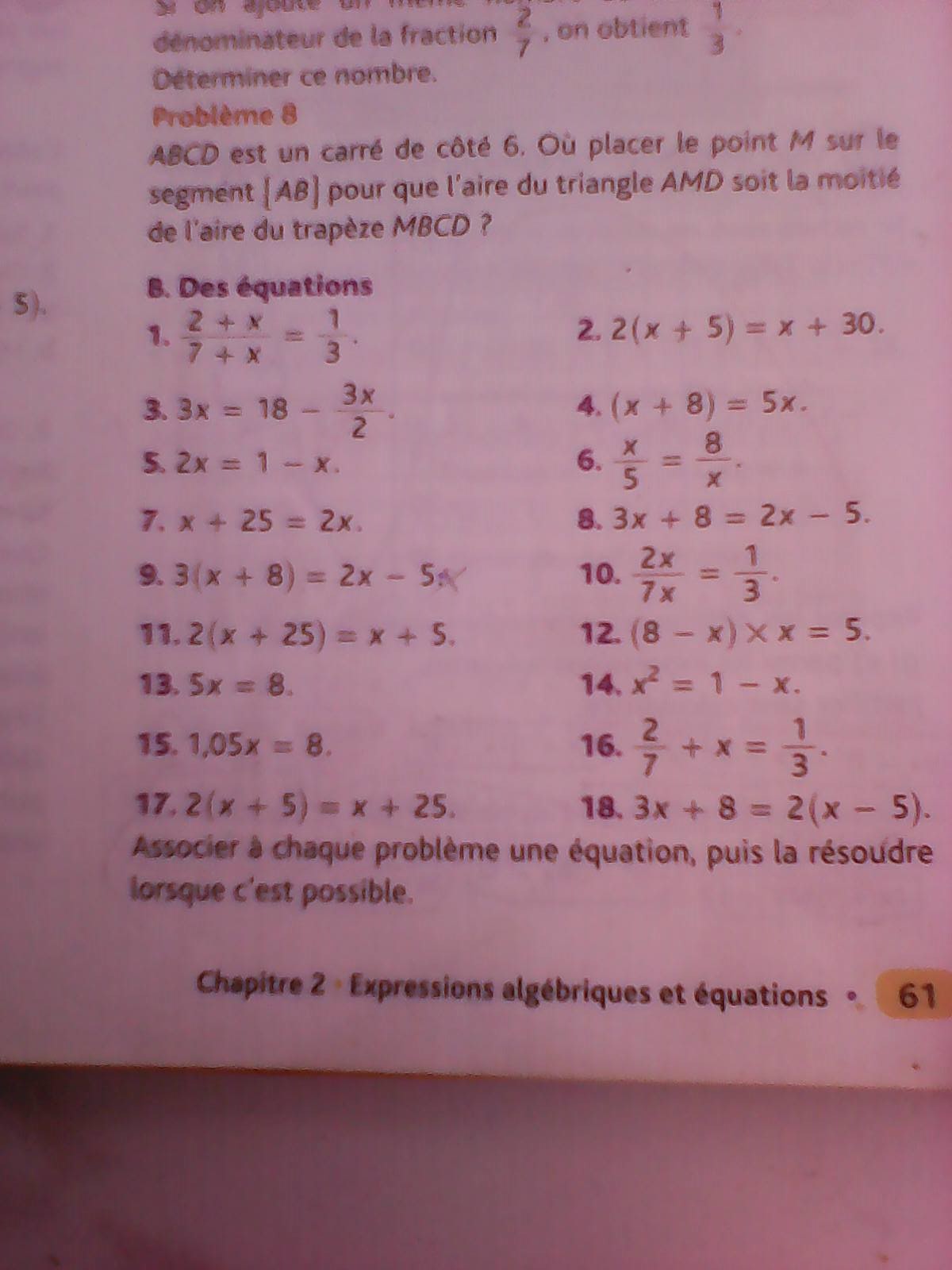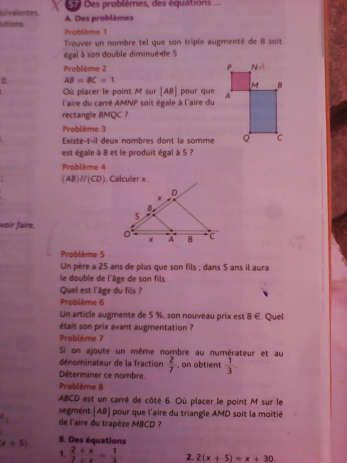 brown Posté(e) le 17 janvier 2016 Signaler Posté(e) le 17 janvier 2016 bonsoir j'ai besoin d'aide pour faire mes équations et mes problème merci d'avance