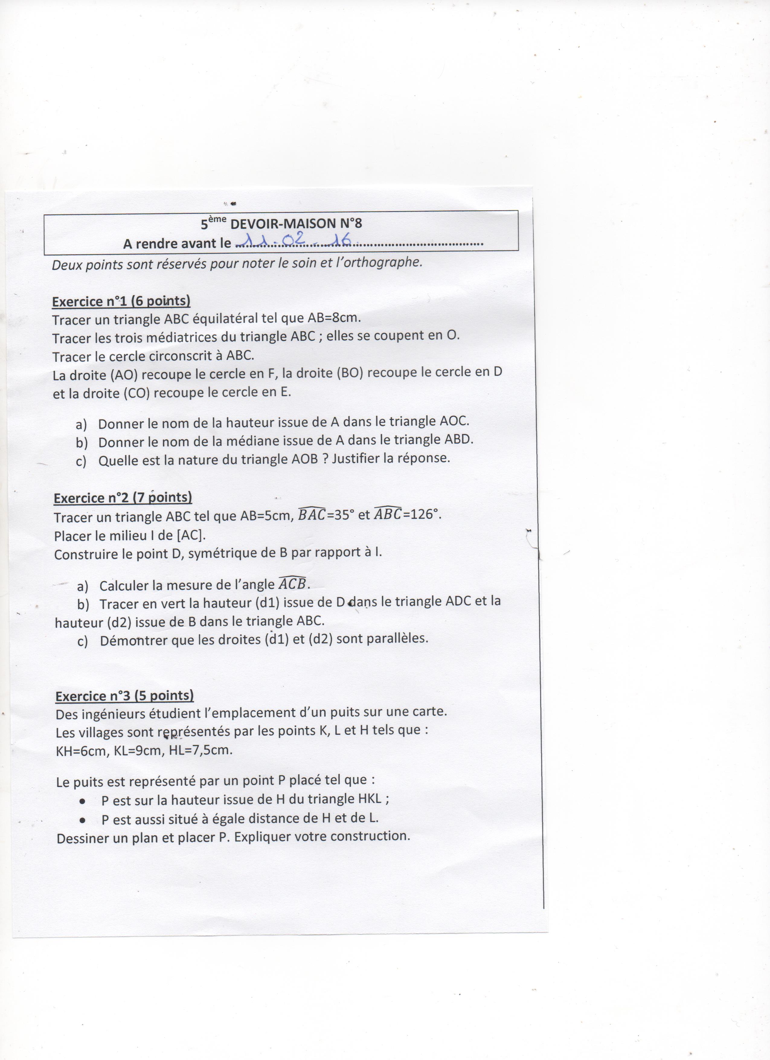 E-Bahut Barbidoux Posté(e) le 6 février 2016 E-Bahut Signaler Posté(e) le 6 février 2016 ----------------- Exercice1 ----------------- AB est la hauteur issue de A dans le triangle AOC AO est la médiane issue de A dans le triangle ABD AC est la hauteur issue de A dans le triangle ABD (droite issue de A perpendiculaire à BD)