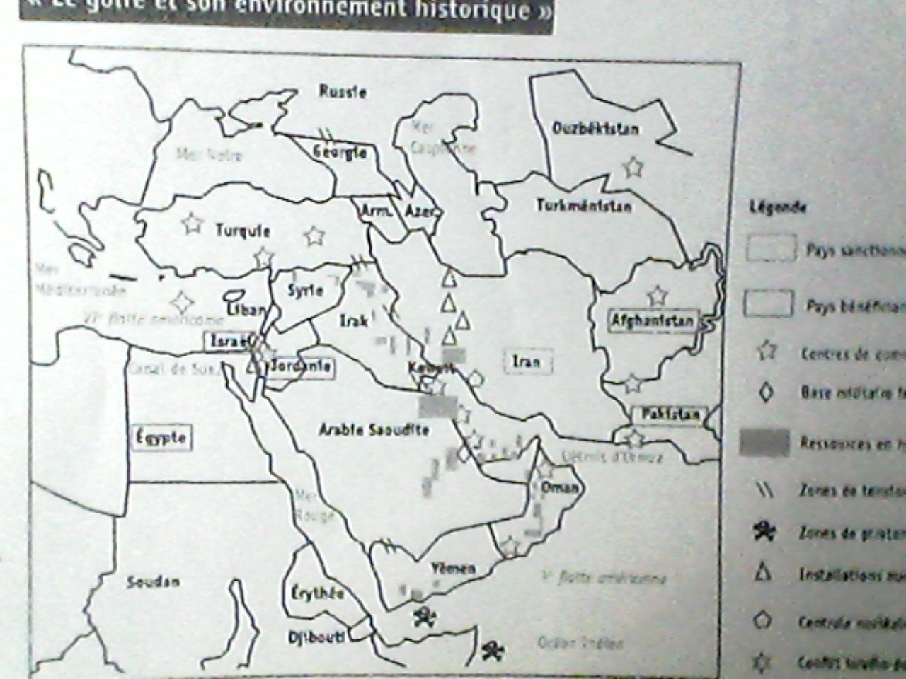 evil07 Posté(e) le 29 mars 2016 Signaler Posté(e) le 29 mars 2016 Bonjour , alors déjà pardonné moi pour la qualité des photos , j'aimerais que vous m'aidiez à réaliser ce devoir qui a pour consigne la suivante : "Vous montrerez quelles sont les sources de conflits au Moyen-Orient en analysant la carte, puis vous mettrez en évidence des éléments d'informations qui n'ont pas été figurées pour traduire cette réalité." J'ai beaucoup de mal à structurer ce genre de devoir car la période n'est pas précisé ce qui laisse alors un sujet trop large et on peut facilement tombé dans le hors sujet , j'ai trouvé comme limite la non-apparition des conflits religieux. Merci d'avance pour vos réponses