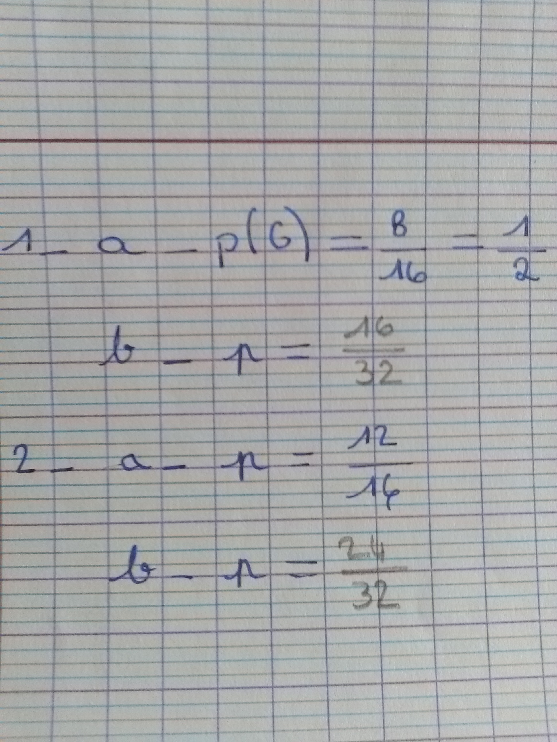 Emma33m Posté(e) le 11 avril 2016 Signaler Posté(e) le 11 avril 2016 Bonjour, j'ai un devoir à rendre pour la rentrée et je souhaite savoir si les réponses que j'ai mises au crayon sont justes. Ça m'étonnerait, donc j'aimerais de l'aide. J'ai fait un arbre de probabilités pour trouver des réponses. Merci bcp