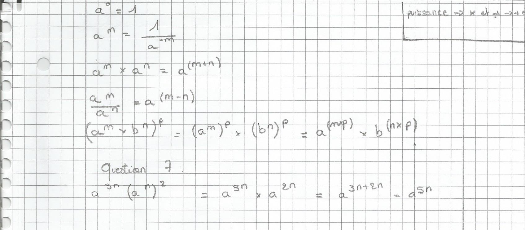 Adèle.prepa Posté(e) le 26 août 2016 Auteur Signaler Posté(e) le 26 août 2016 Merci à tous pour vos réponses ! Cela m'a vraiment aidé et j'ai pu finir les questions sur les puissances . Et voilà ce que l'on m'avait demandé de faire pour être sur que je comprenne les notations, je ne pense pas m'être trompé ...