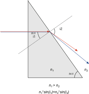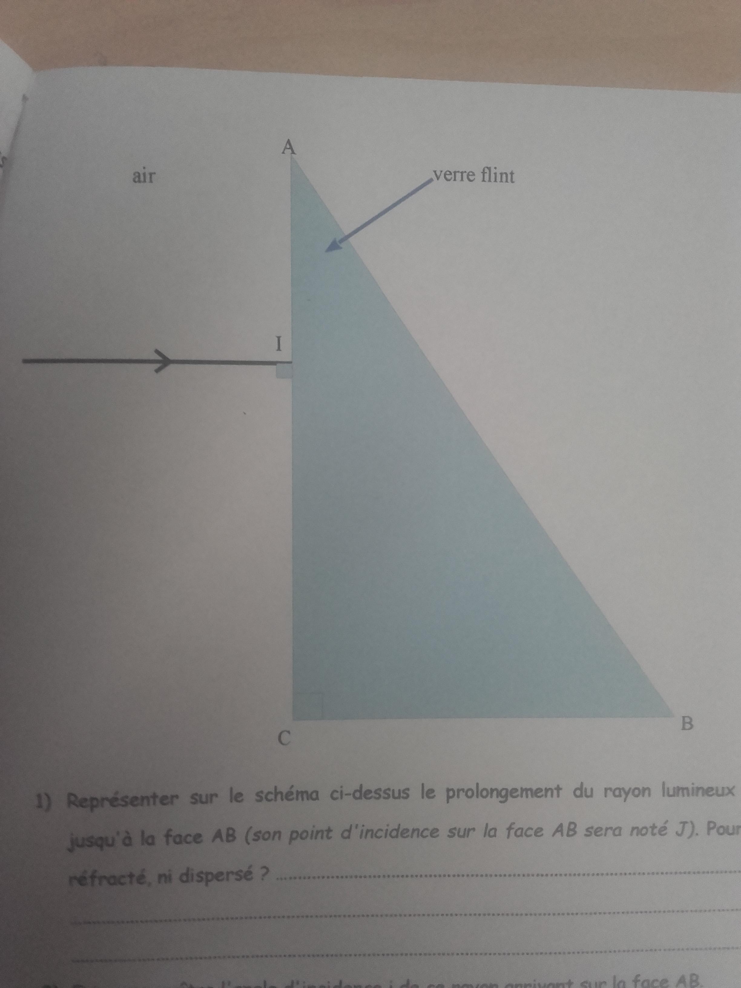 E-Bahut Barbidoux Posté(e) le 27 novembre 2016 E-Bahut Signaler Posté(e) le 27 novembre 2016 Application d ela relation n1*sin(i1)=n2*sin(i2) a 700 nm indice 1.62 ==> angle incidence 35.5 et angle réfraction=70.17°