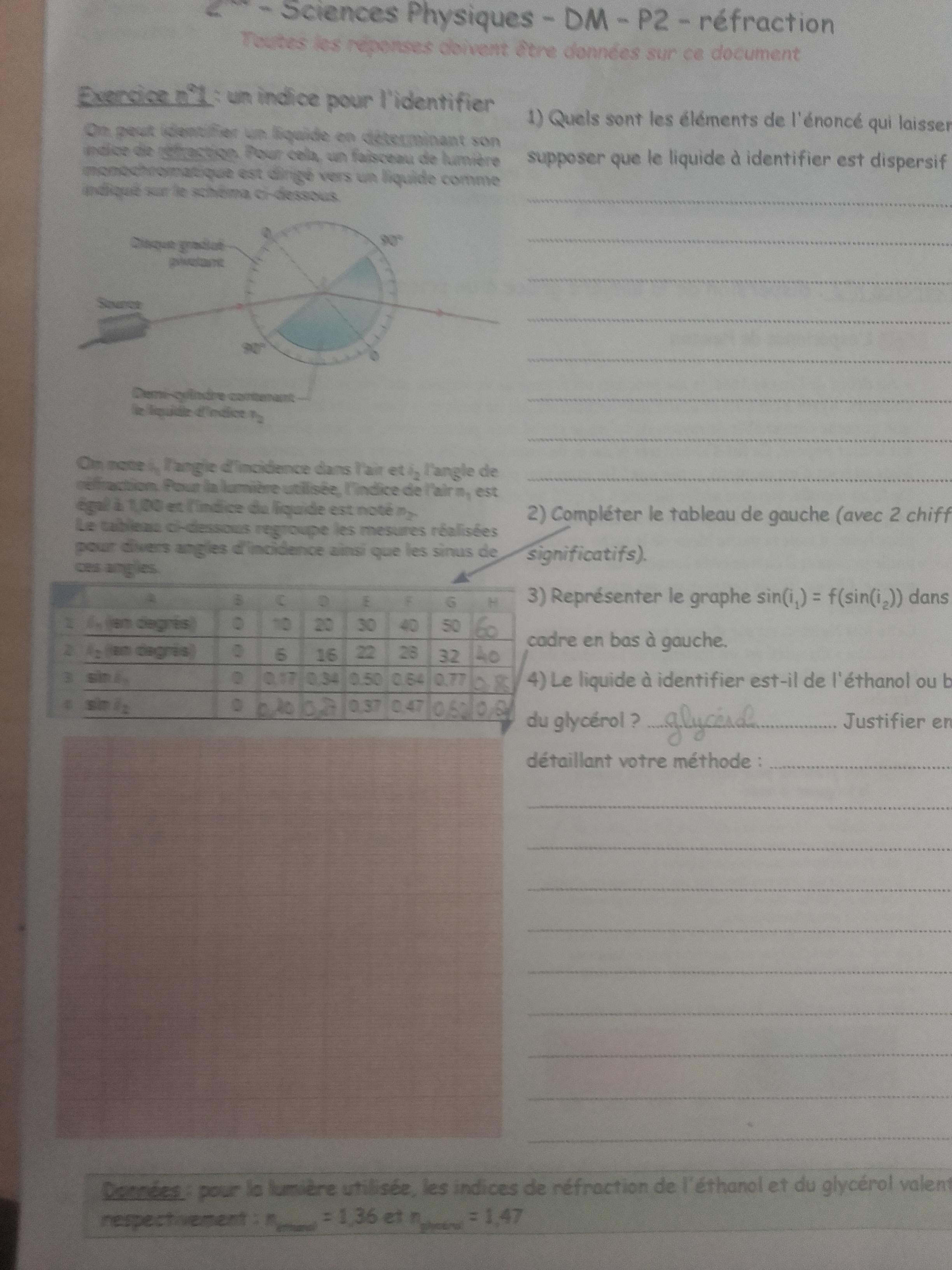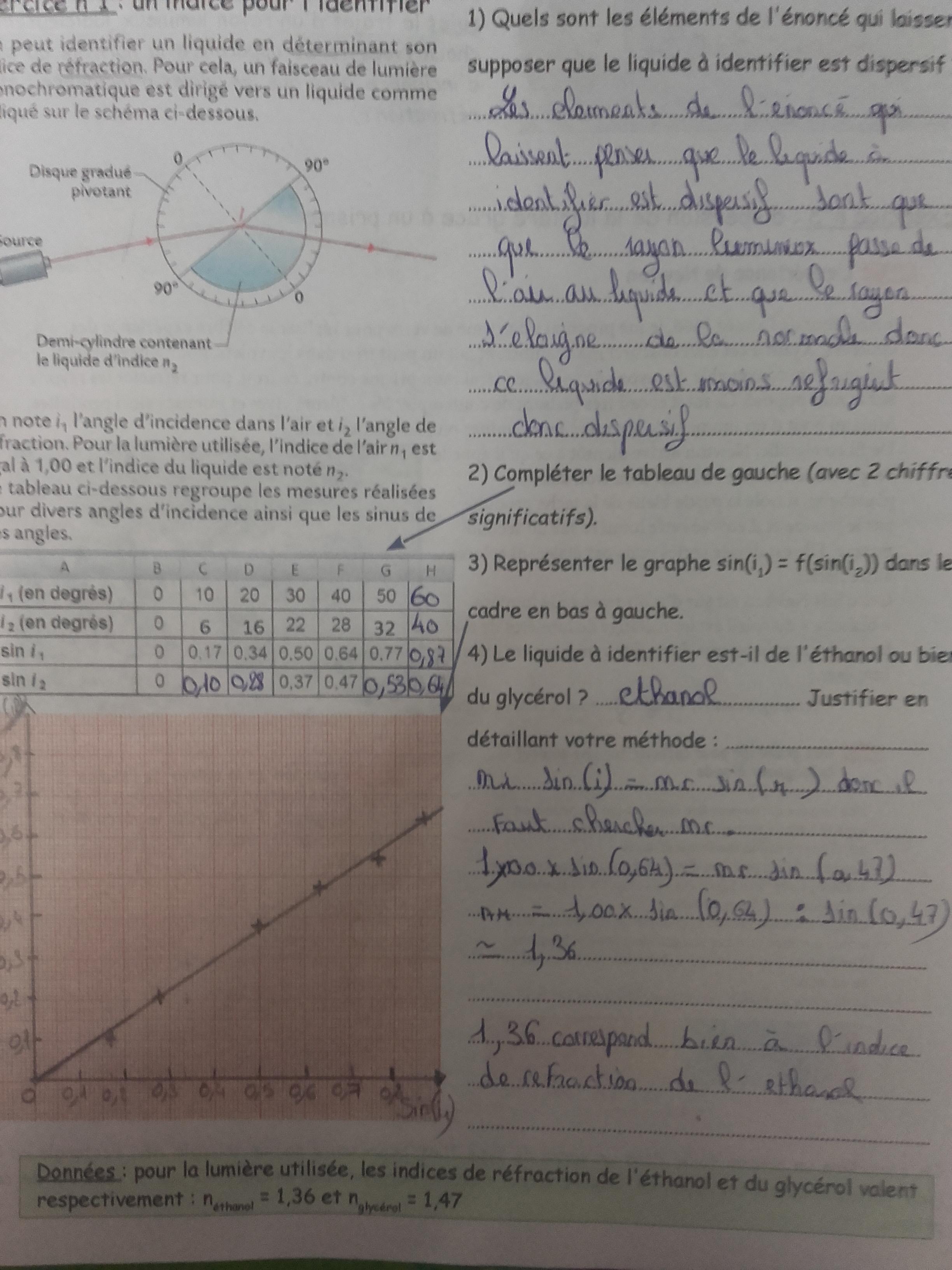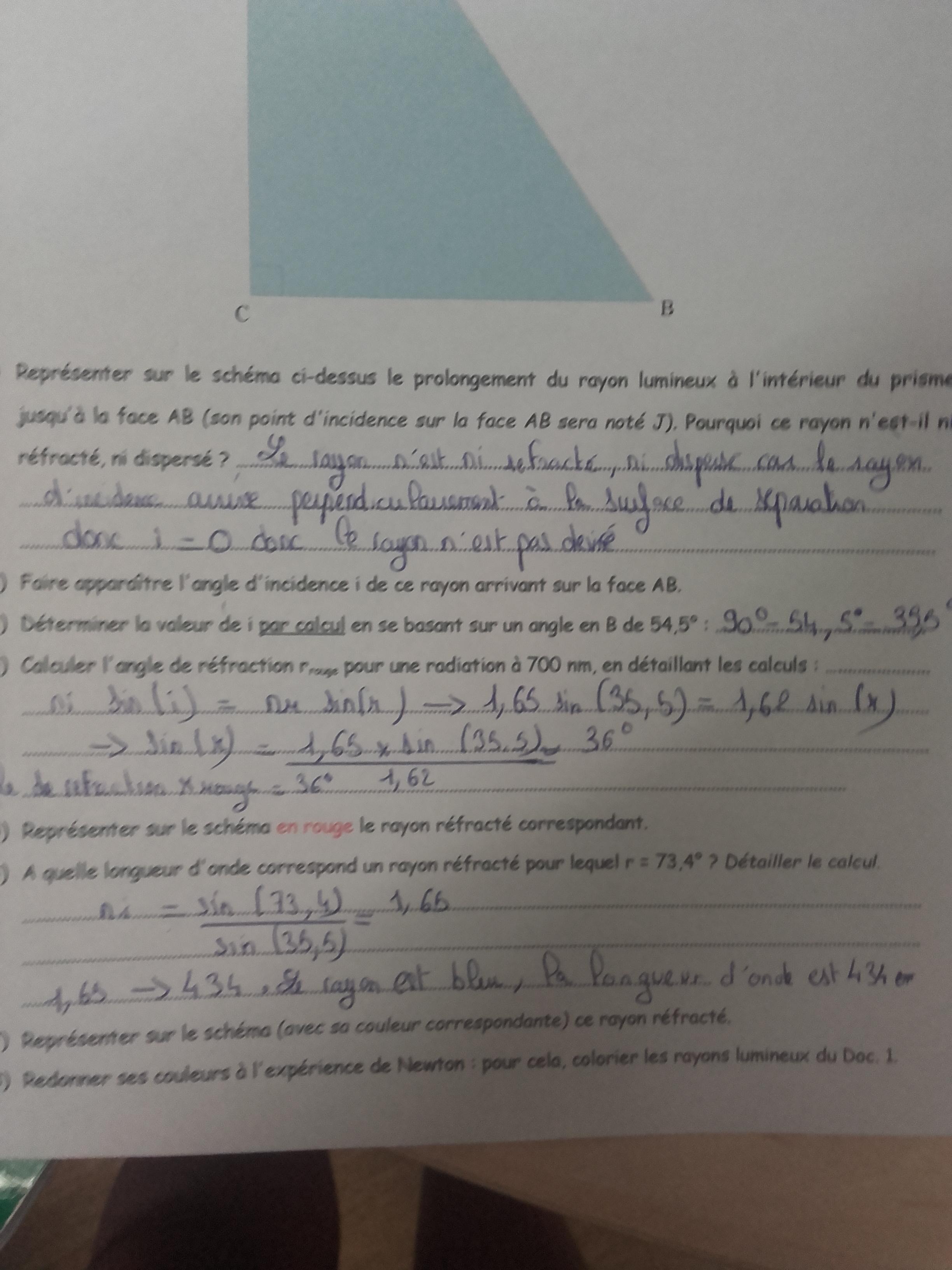 E-Bahut Barbidoux Posté(e) le 27 novembre 2016 E-Bahut Signaler Posté(e) le 27 novembre 2016 6----------- Sin[73.4*π/180]/Sin[35.5*π/180] =1.65 ==> Lamda=450 nm 7/8-----------