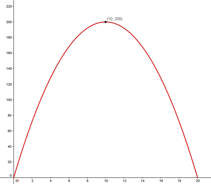 Hiphigenie Posté(e) le 14 décembre 2016 Signaler Posté(e) le 14 décembre 2016 c) La fonction A est une fonction trinôme du second degré. La courbe représentative de cette fonction est une parabole. Tu peux trouver les abscisses des points d'intersection de cette parabole avec l'axe des abscisses en résolvant l'équation A(x) = 0 -2x² + 40x = 0 2x(-x + 20) = 0 "Equation produit nul" ==> ... ==> les abscisses des points d'intersection de cette parabole avec l'axe des abscisses sont x1 = ... et x2 = ... L'abscisse du sommet de la parabole est le centre de l'intervalle [x1 ; x2]. Tu peux donc trouver l'ordonnée de ce sommet en calculant l'image de cette abscisse par la fonction A. Tu calcules ensuite les images de quelques valeurs de x comprises entre 0 et 20. Par exemple : A(2) ; A(4) : A(6) ; ... Il ne te reste plus qu'à tracer la parabole.