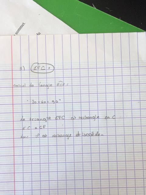 E-Bahut Boltzmann_Solver Posté(e) le 26 décembre 2016 E-Bahut Signaler Posté(e) le 26 décembre 2016 il y a 4 minutes, eva.grvn a dit : Un triangle ABC rectangle isocèle en A est untriangle qui a un angle droit en A et deux côtés [AB] et [AC] de même longueur. Ca marche ! Essaye de me le démontrer pour le triangle ECF.