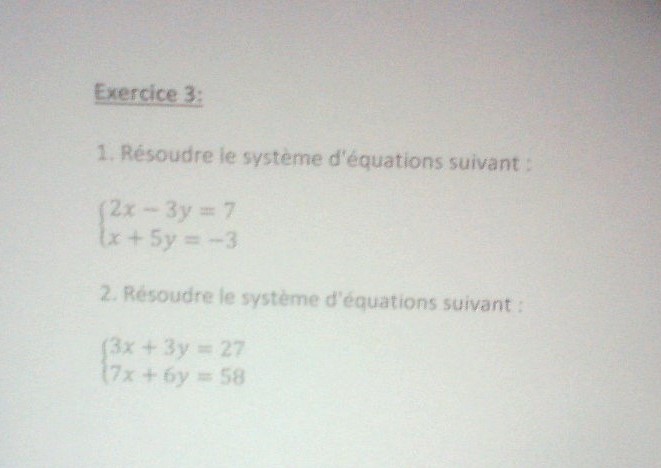 E-Bahut pzorba75 Posté(e) le 13 janvier 2017 E-Bahut Signaler Posté(e) le 13 janvier 2017 À part les photos de mauvaise qualité, qu'as-tu fait? Le forum n'est pas un robot qui répond aux urgences. Montre ton travail si tu veux de l'aide. Si tu attends des réponses pour les envoyer en photo à ton professeur, donne l'email de ton professeur et, peut-être, un visiteur du forum, lui enverra directement les réponses.