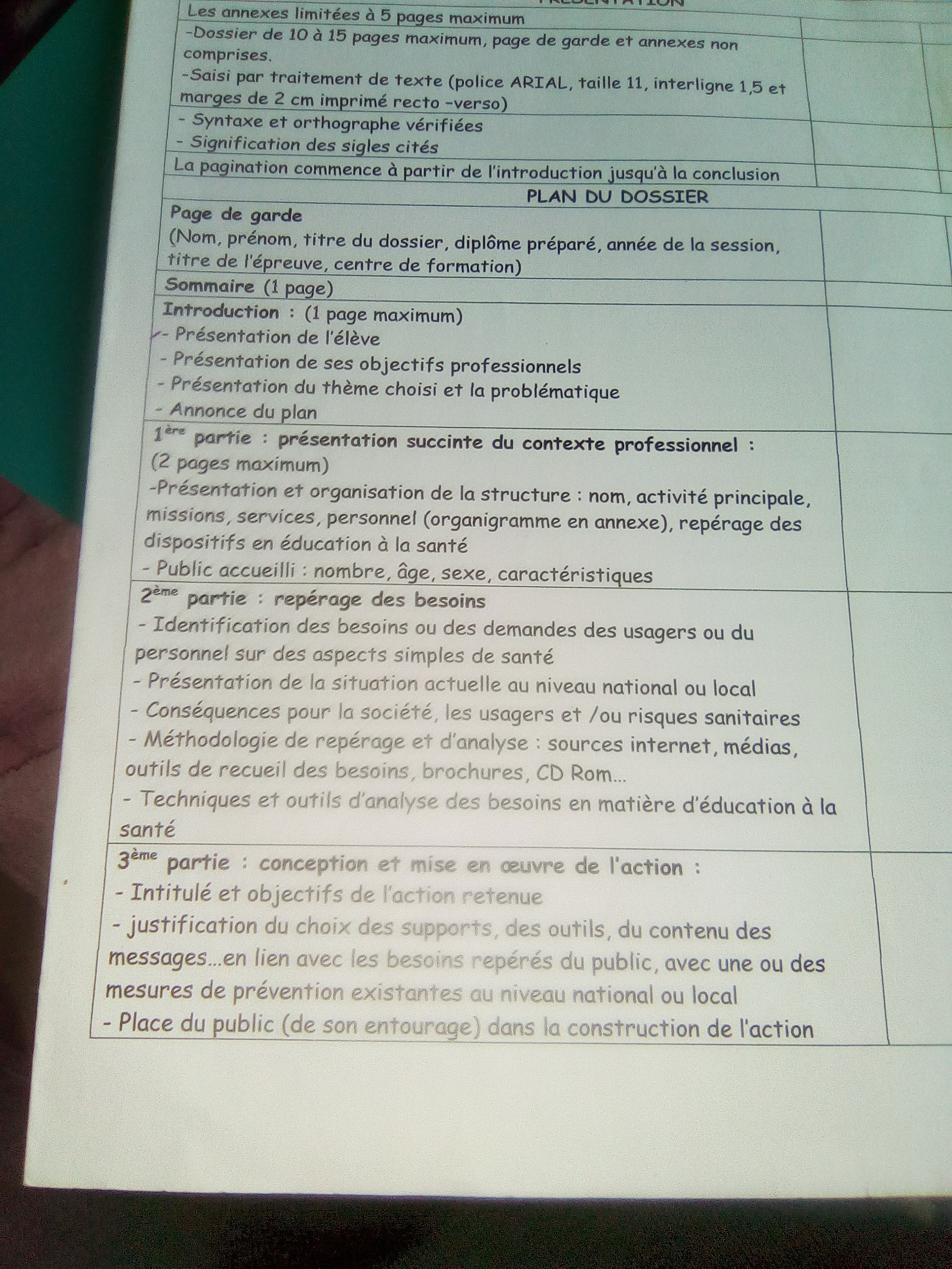 E-Bahut Mamy Posté(e) le 20 avril 2017 E-Bahut Signaler Posté(e) le 20 avril 2017 Donc tu dois trouver les renseignements , ce qui est un peu différent. 1° partie Tu crées une structure ou si tu souhaites profiter de structures existantes ( école, hôpital, PMI , cabinet dentaire, aide à l’enfance ....)? Le personnel? Le financement? Le public visé? L’information?