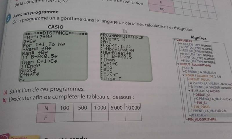 E-Bahut Denis CAMUS Posté(e) le 23 avril 2017 E-Bahut Signaler Posté(e) le 23 avril 2017 Tu fais 5 fois Ran# et tu les écris dans a Tu fais 5 fois - Ran# et tu les écris dans b A la troisième ligne, tu effectues le calcul de la longueur AB (b-a)