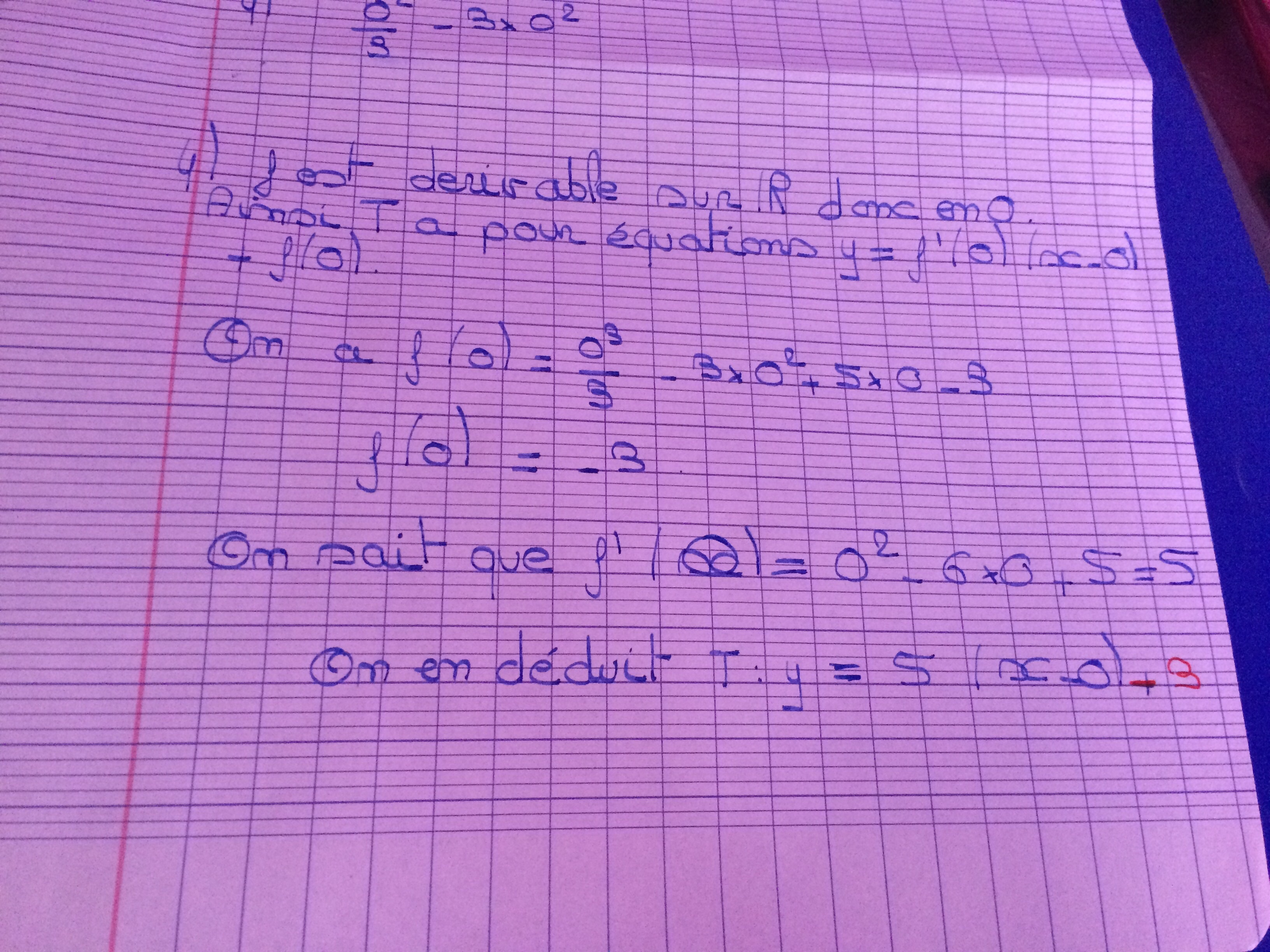 E-Bahut PAVE Posté(e) le 14 mai 2017 E-Bahut Signaler Posté(e) le 14 mai 2017 Soit y = 5x - 3 comme indiqué sur le graphique où j'avais tracé les 2 tangentes car (x-0) = x bien sûr !! Tu n'as plus qu'à faire la dernière question