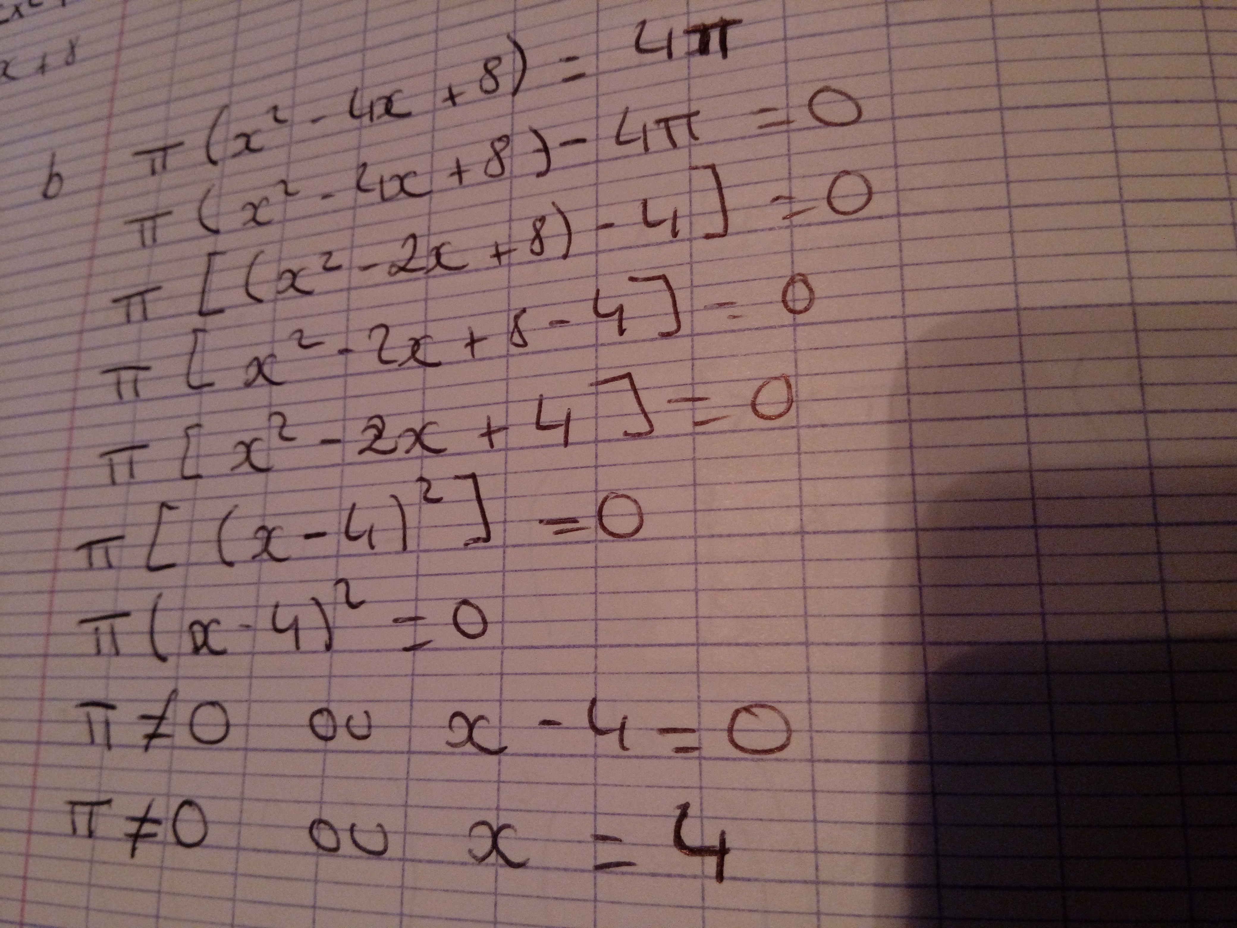 Crevette2020 Posté(e) le 28 octobre 2017 Signaler Posté(e) le 28 octobre 2017 Pour la réponse précédente je n'ai pas changer de formule j'ai garde le π(x2-4x+8) et je ne vois quel autre forme je peut utiliser pour résoudre la troisième question.