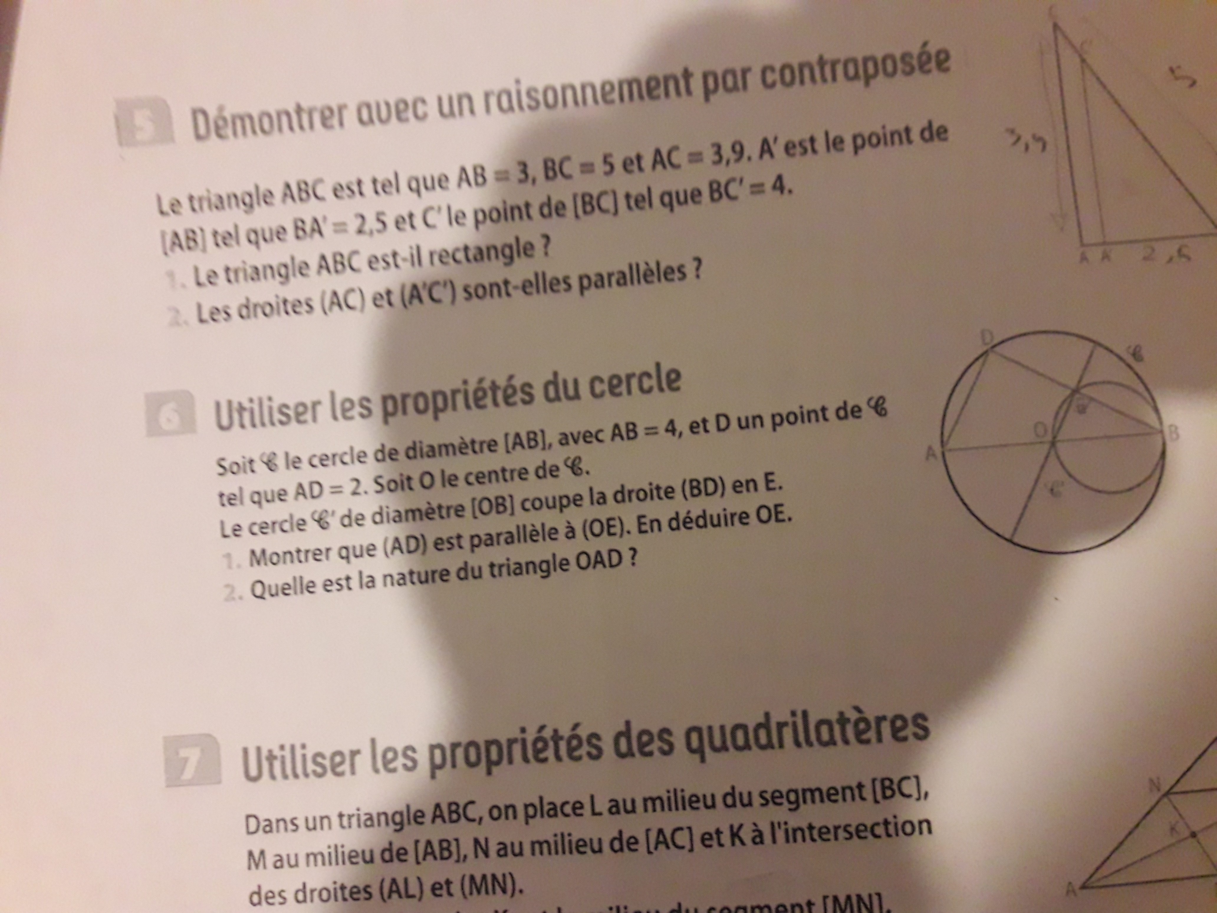 Dan-nul-maths Posté(e) le 7 novembre 2017 Auteur Signaler Posté(e) le 7 novembre 2017 Parallèle merci beaucoup de votre aide Par contre pour la 2 j'ai du mal avoir ce que l'on me demande J'ai pensé à utiliser la propriété du triangles dans un cercle mais cela ne marche que pour le rectangle ABO