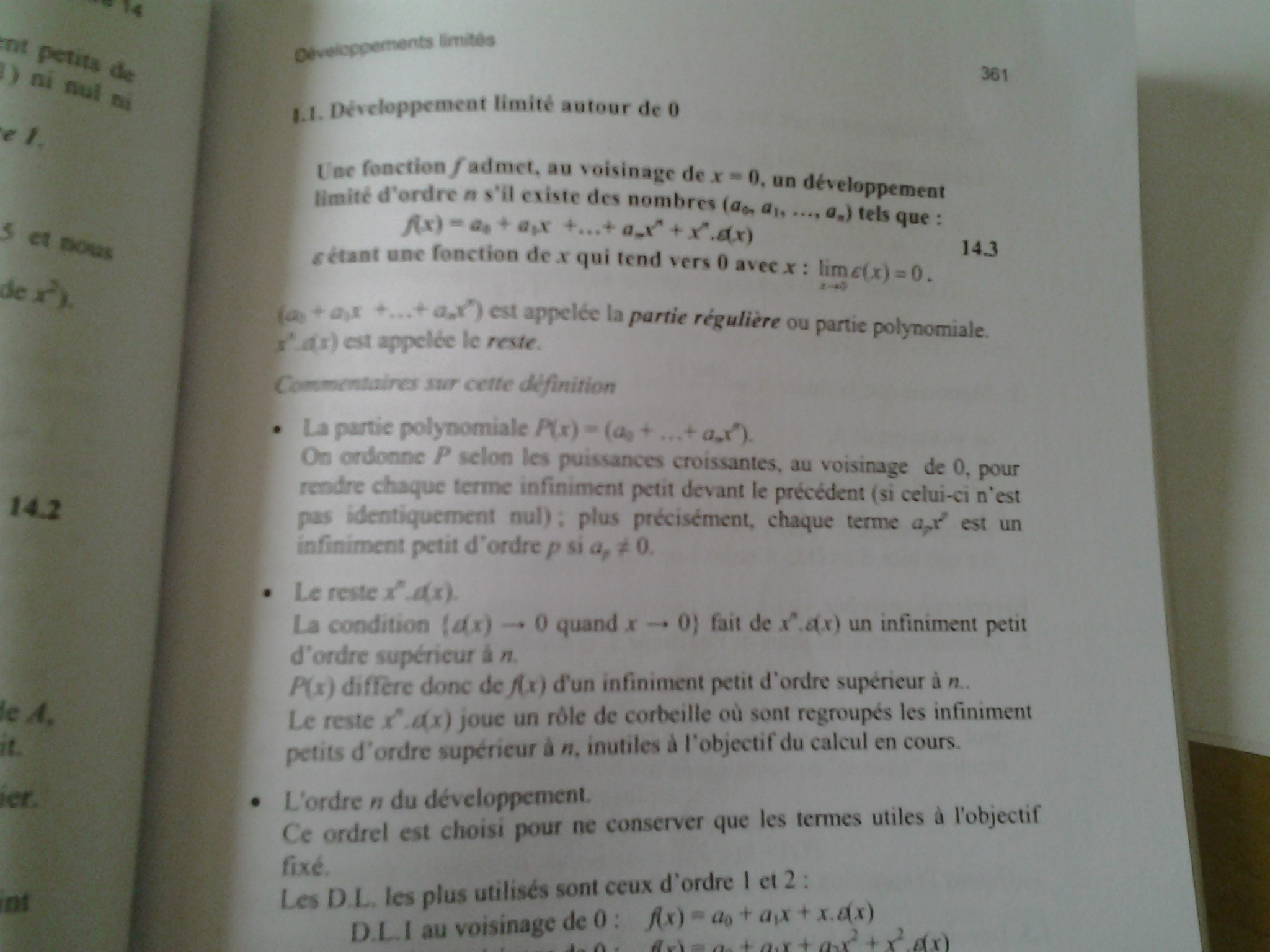 C8H10N4O2 Posté(e) le 2 janvier 2018 Auteur Signaler Posté(e) le 2 janvier 2018 Merci de cette réponse, JLN , Voici la définition du manuel d'analyse sur lequel je travaille. Le passage qui me pose problème est le suivant : "la condition { ε(x) -> 0 lorsque x-> 0 } fait de xnε(x) un infiniment petit d'ordre supérieur à n " J'avoue ne pas bien saisir pourquoi...