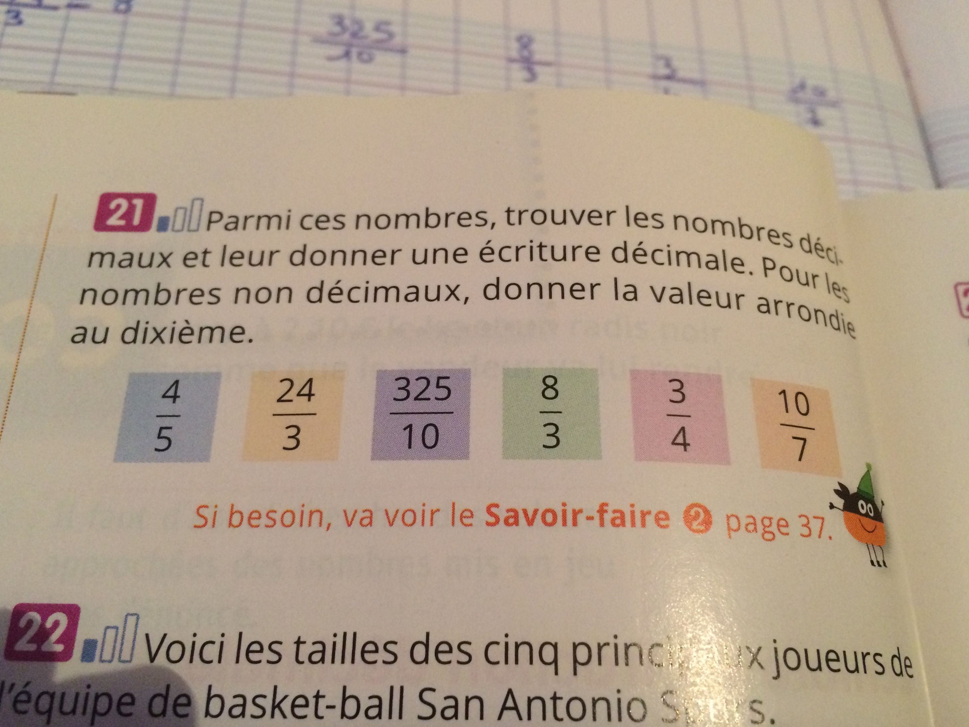 Ju13 Posté(e) le 6 janvier 2018 Signaler Posté(e) le 6 janvier 2018 Bonsoir 4sur 5. 0,8 = 8sur 10 24sur3 =8