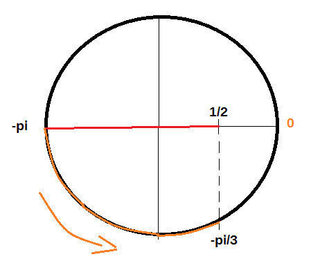 anylor Posté(e) le 17 janvier 2018 Signaler Posté(e) le 17 janvier 2018 si tu as le cercle trigonométrique sous les yeux ( à défaut de l'avoir dans la tête) si x appartient à [-pi;0] c'est qu'il est dans le demi cercle inférieur ( sous axe des abscisses) donc si cos x < 1/2 tu regardes l'intervalle qui correspond lecture du cercle trigonométrique il faut que x soit inférieur à -pi/3 ( car cos -pi/3 = 1/2) donc en déinitive x appartient à [-pi ; -pi/3[