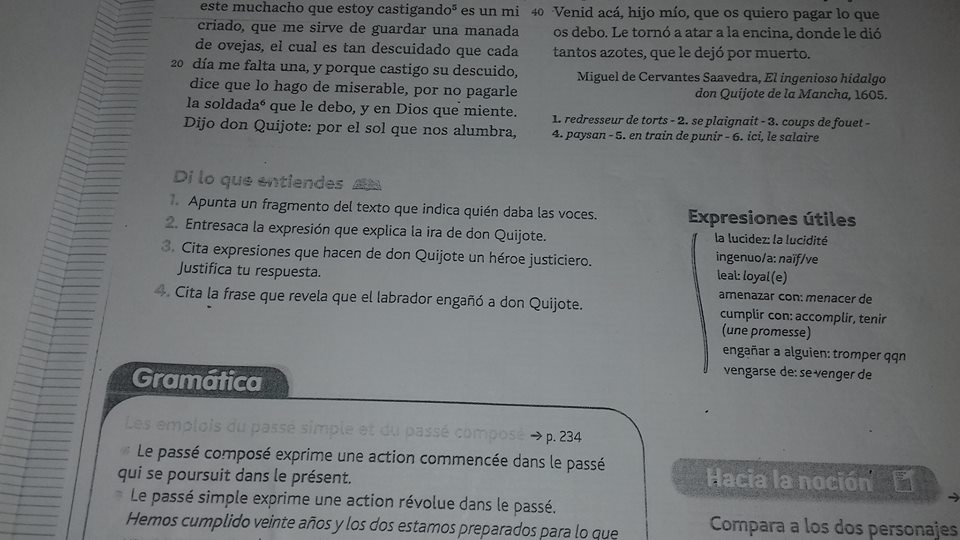SANDYBELCOU Posté(e) le 10 février 2018 Signaler Posté(e) le 10 février 2018 bonsoir mes amis pourriez vous m'aider je suis nul en espagnol pourriez vous m'aider a répondre au question 1.2. et 4 s'il vous plait merci