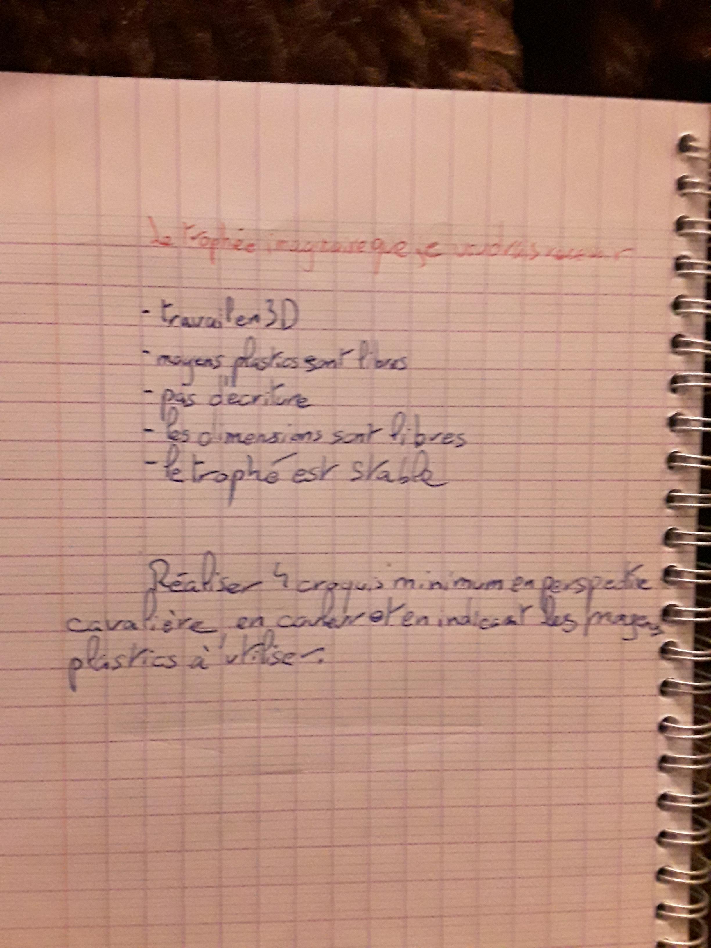Virginied59 Posté(e) le 10 février 2018 Signaler Posté(e) le 10 février 2018 Je n'ai aucune idée de ce que je pourrais proposé de facile a réaliser. J'ai pensé au trophée du plus gros lecteur (je suis un véritable rat de bibliothèque ). Pouvez vous m'aider pour sortir un croquis en perspectives cavalières et en indiquant les moyens plastiques utilisés (en restant dans la simplicité car je dois le faire à la maison)