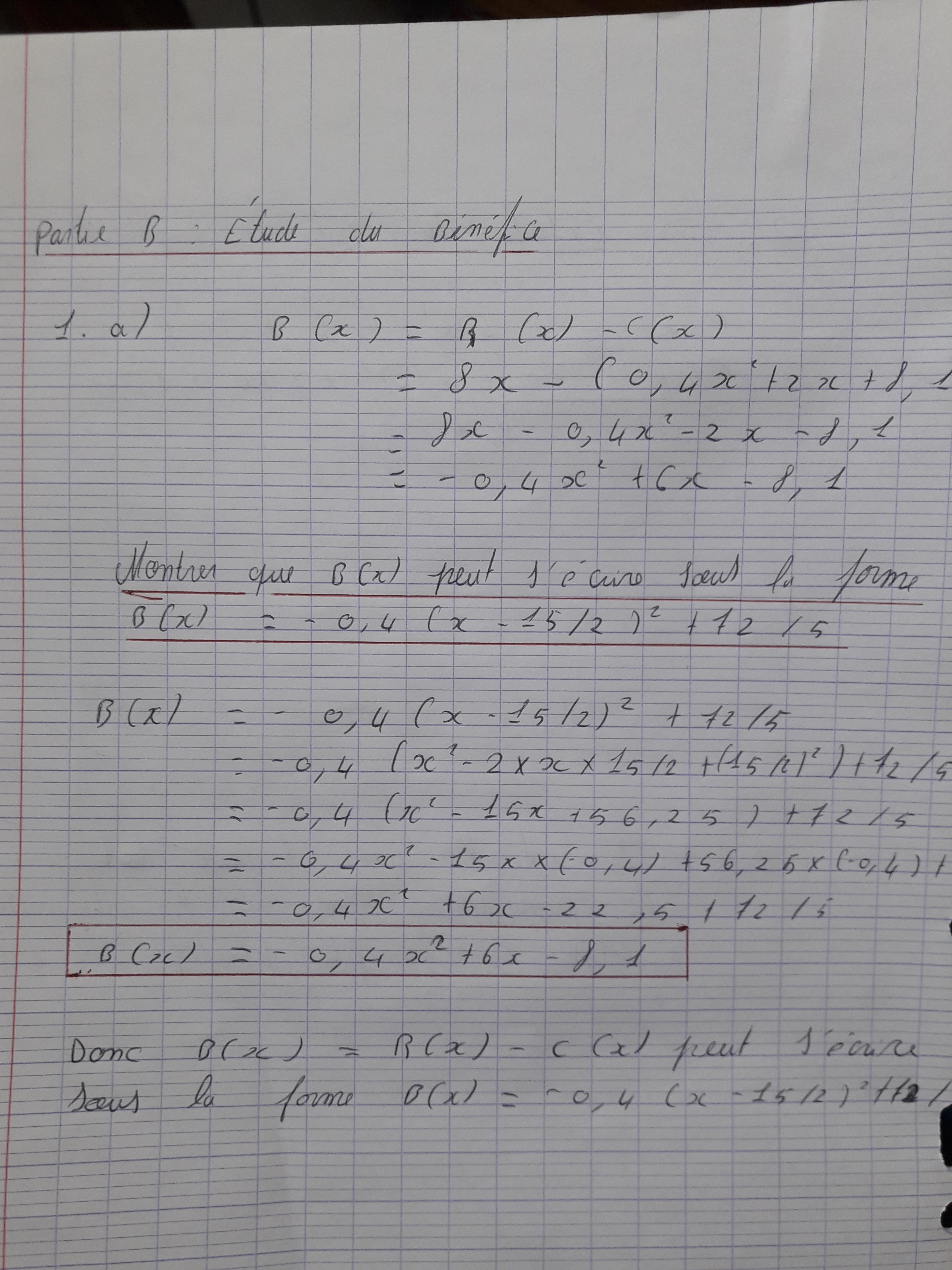Crevette2020 Posté(e) le 26 avril 2018 Signaler Posté(e) le 26 avril 2018 Il y a 2 heures, Crevette2020 a dit : Bonjour à vous effectivement mais nous avons du mal à répondre à la 2a et la 2b de la partie B Voici l’énoncé de notre devoir maison On arrive cependant à lire ce que j’ai écrit ?