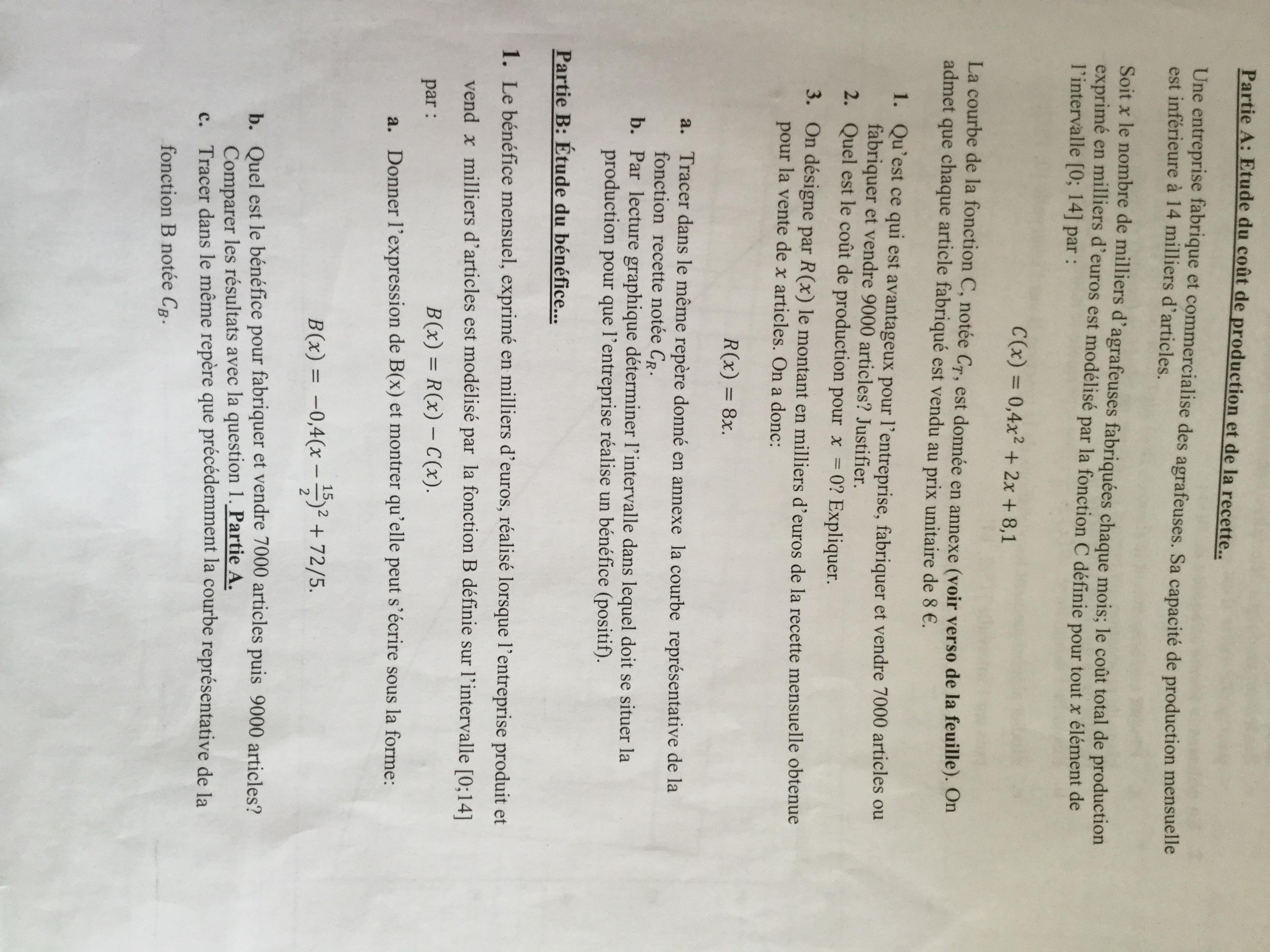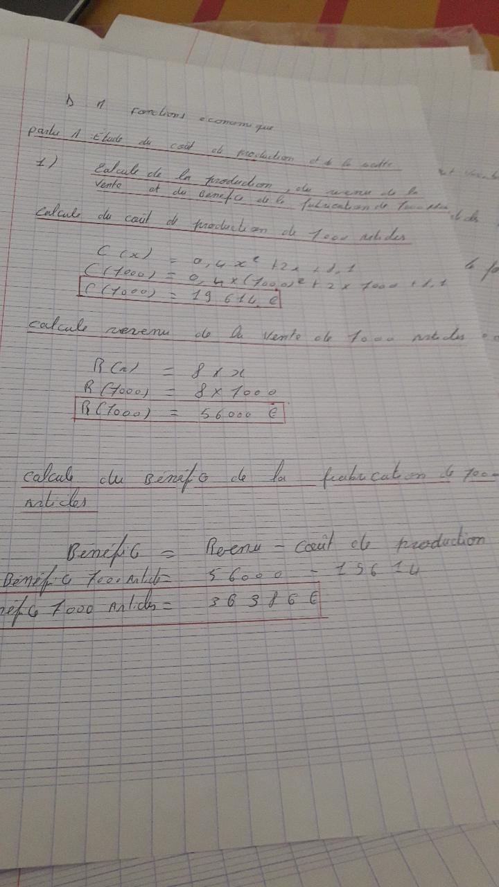 E-Bahut pzorba75 Posté(e) le 26 avril 2018 E-Bahut Signaler Posté(e) le 26 avril 2018 A2 C(0)=8,1 Une usine coûte même si elle ne produit rien, par exemple les impôts fonciers, la taxe professionnelle ou le gardiennage. Pour le reste, l'écriture manuscrite est pénible à déchiffrer et les photos de votre travail de trop mauvaise qualité. Pour avoir de l'aide, il faut taper les réponses au clavier.