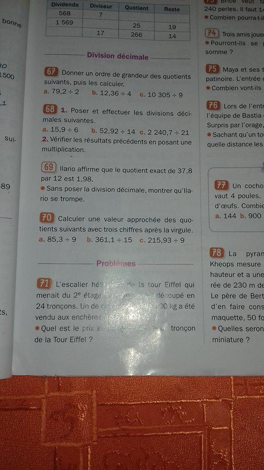 SANDYBELCOU Posté(e) le 14 mai 2018 Signaler Posté(e) le 14 mai 2018 bonsoir pourriez vous m'aider s'il vous plait c'est pour petit frère je ne suis pas trop forte math l'exercice 68.69.70 s'il vous plait merci c'est pour demain