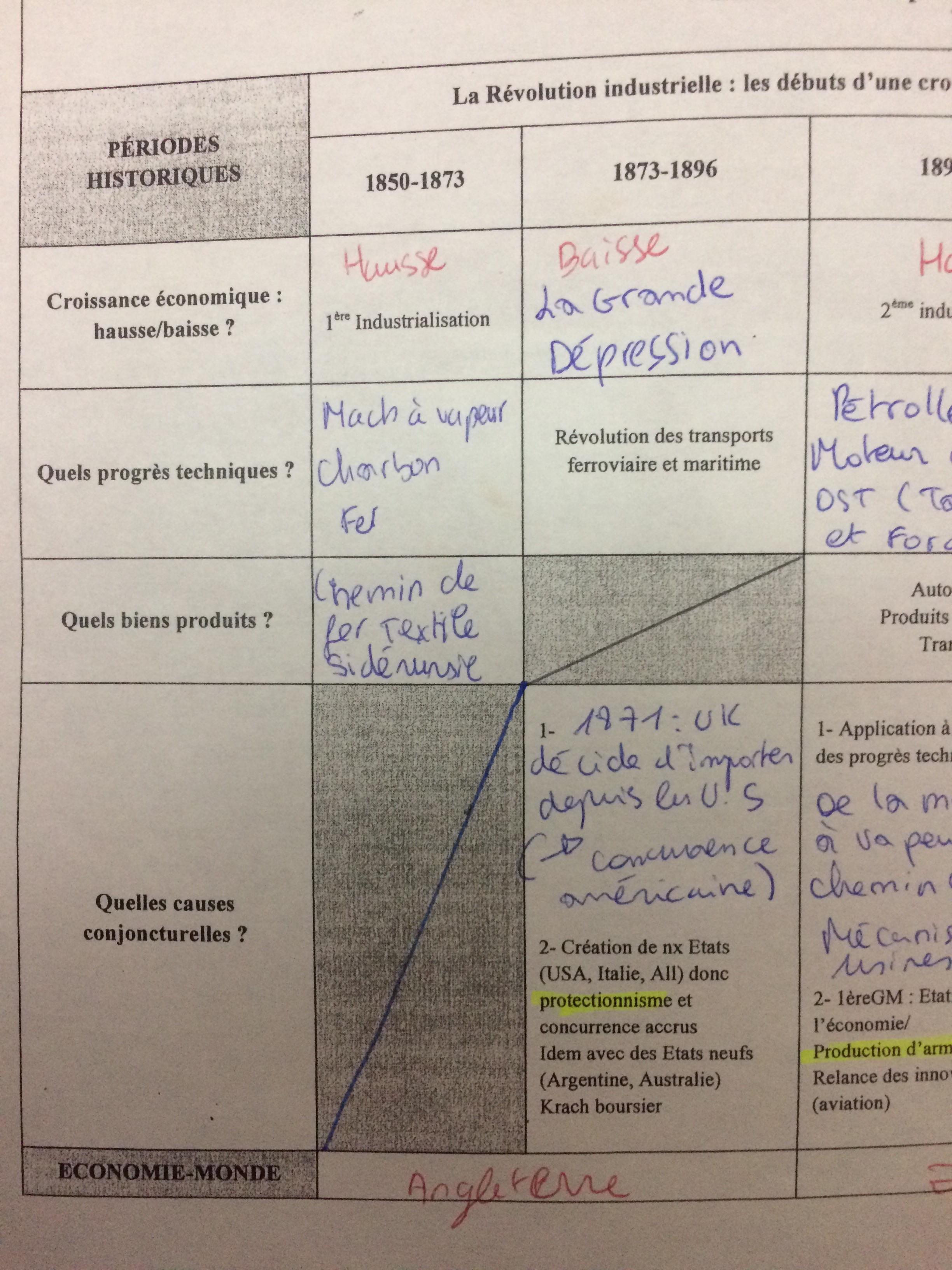 E-Bahut Mamy Posté(e) le 7 octobre 2018 E-Bahut Signaler Posté(e) le 7 octobre 2018 Pour la grande dépression: https://www.economie.gouv.fr/facileco/crise-1929-et-grande-depression Due à la spéculation dans un marché en baisse Les progrès techniques: https://slideplayer.fr/slide/10523844/ Entrainent des transports plus rapides, une fabrication plus rapide , donc plus d'échanges , des usines plus grandes et plus performantes = > fermetures d'ateliers, migration vers les villes