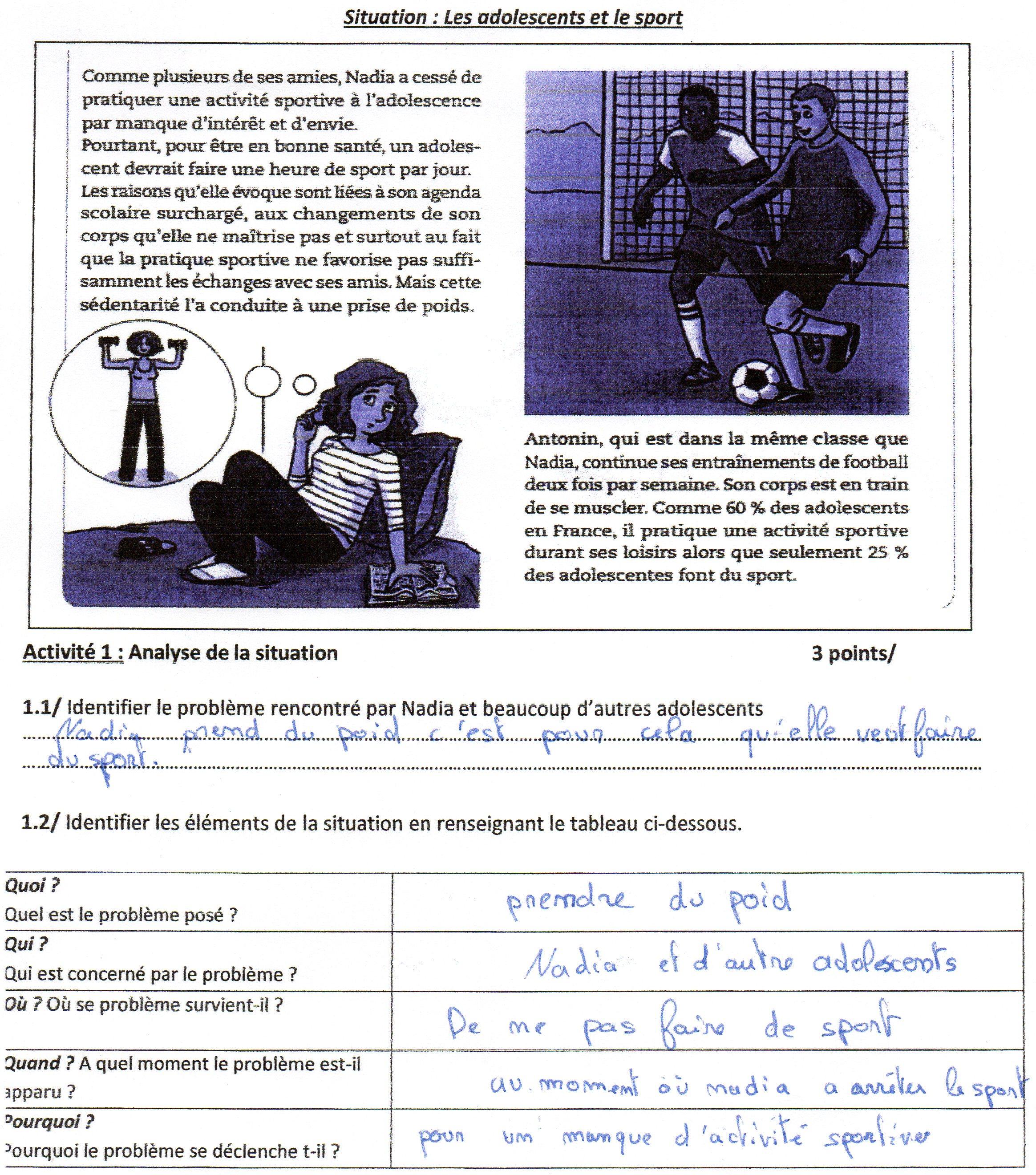 E-Bahut Mamy Posté(e) le 19 octobre 2018 E-Bahut Signaler Posté(e) le 19 octobre 2018 1.1 Elle ne fait plus de sport, rien en dit qu'elle veut en faire , la bulle suggère qu'elle pense qu'elle devrait en faire, mais elle est sur son lit, pas dans une salle de sport. Quoi? Nadia prend du poids * Où? ("ce" et non pas "se") Sur le corps Quand? A l'adolescence au moment de la puberté Pourquoi? Manque d’activité sportive, mais aussi , transformation du corps