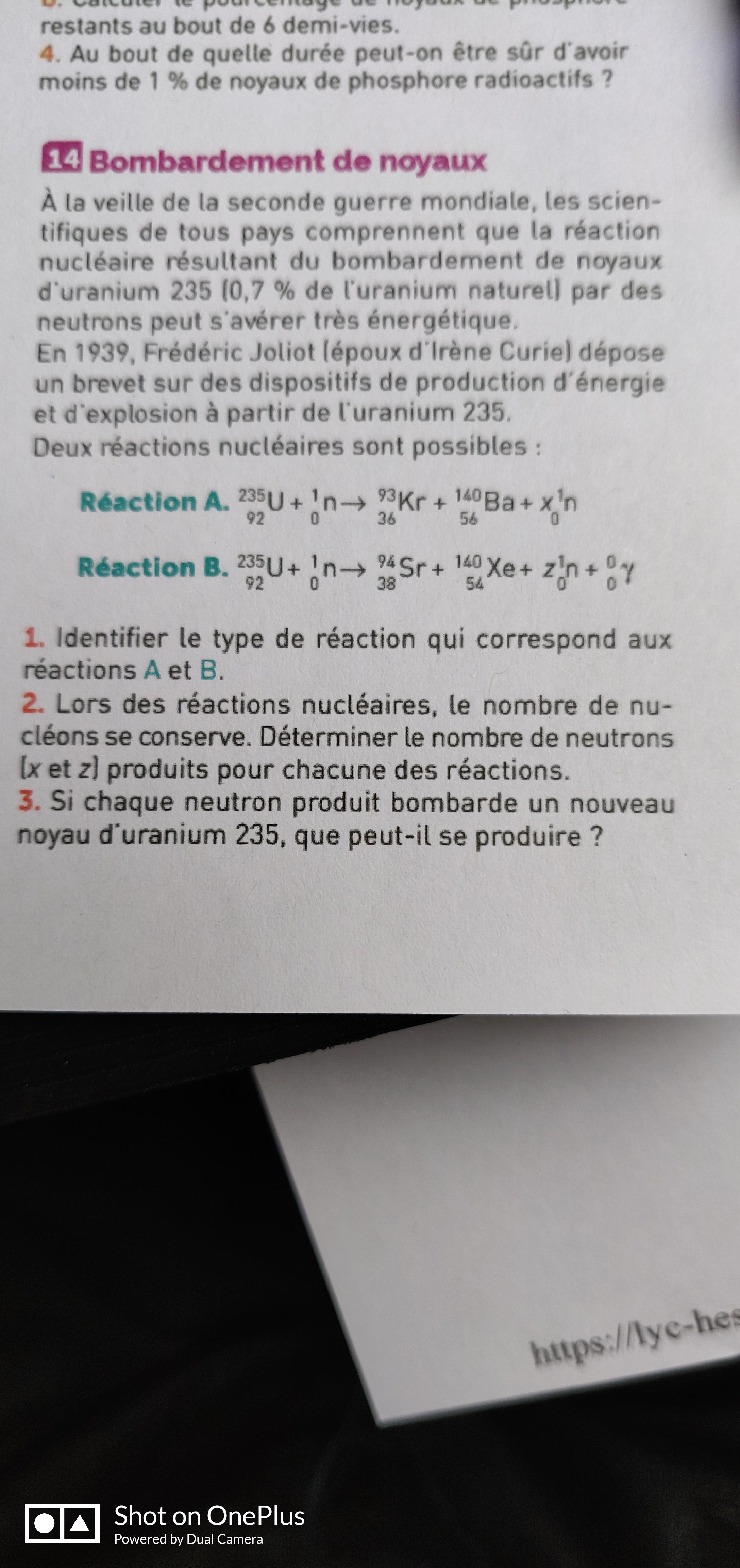 E-Bahut Barbidoux Posté(e) le 25 septembre 2019 E-Bahut Signaler Posté(e) le 25 septembre 2019 1—————— Réaction de fission nucléaire 2—————— x=2 et z=1 3—————— une réaction en chaine