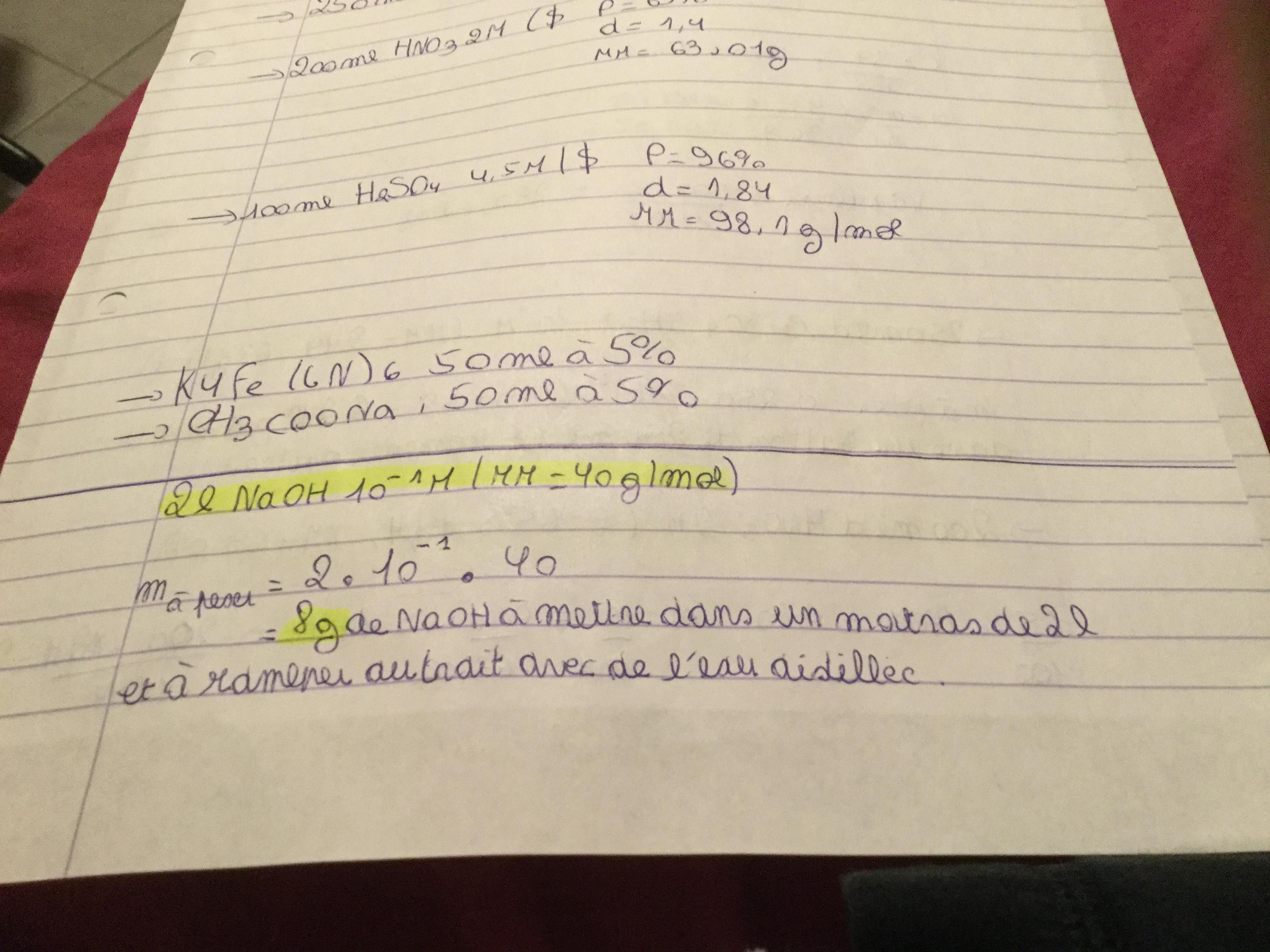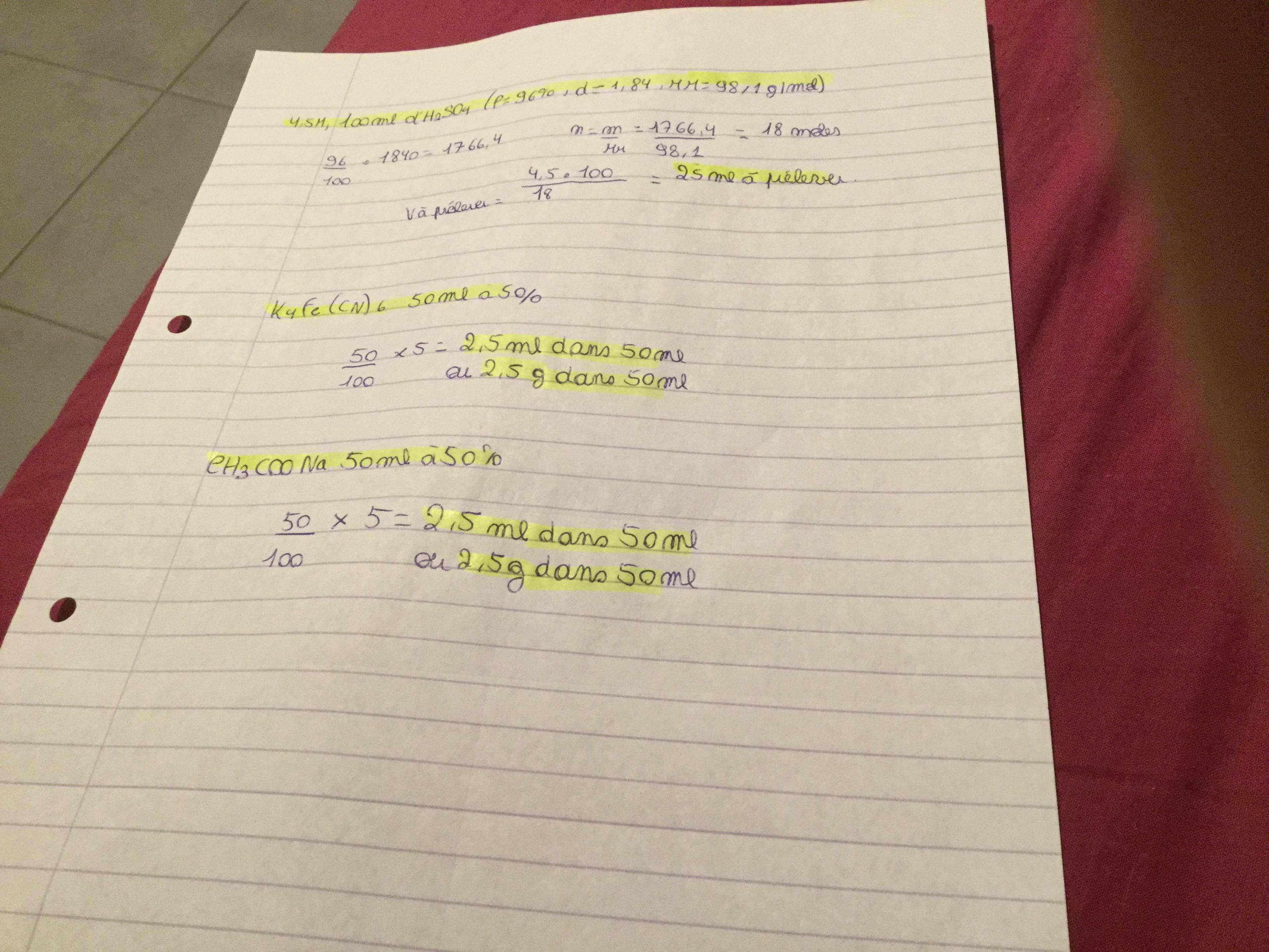devoirelise Posté(e) le 5 octobre 2019 Signaler Posté(e) le 5 octobre 2019 Bonsoir pouvez vous vérifier si mes calculs de préparations de solutions sont correctes j ai un labo cette semaine merci d avance