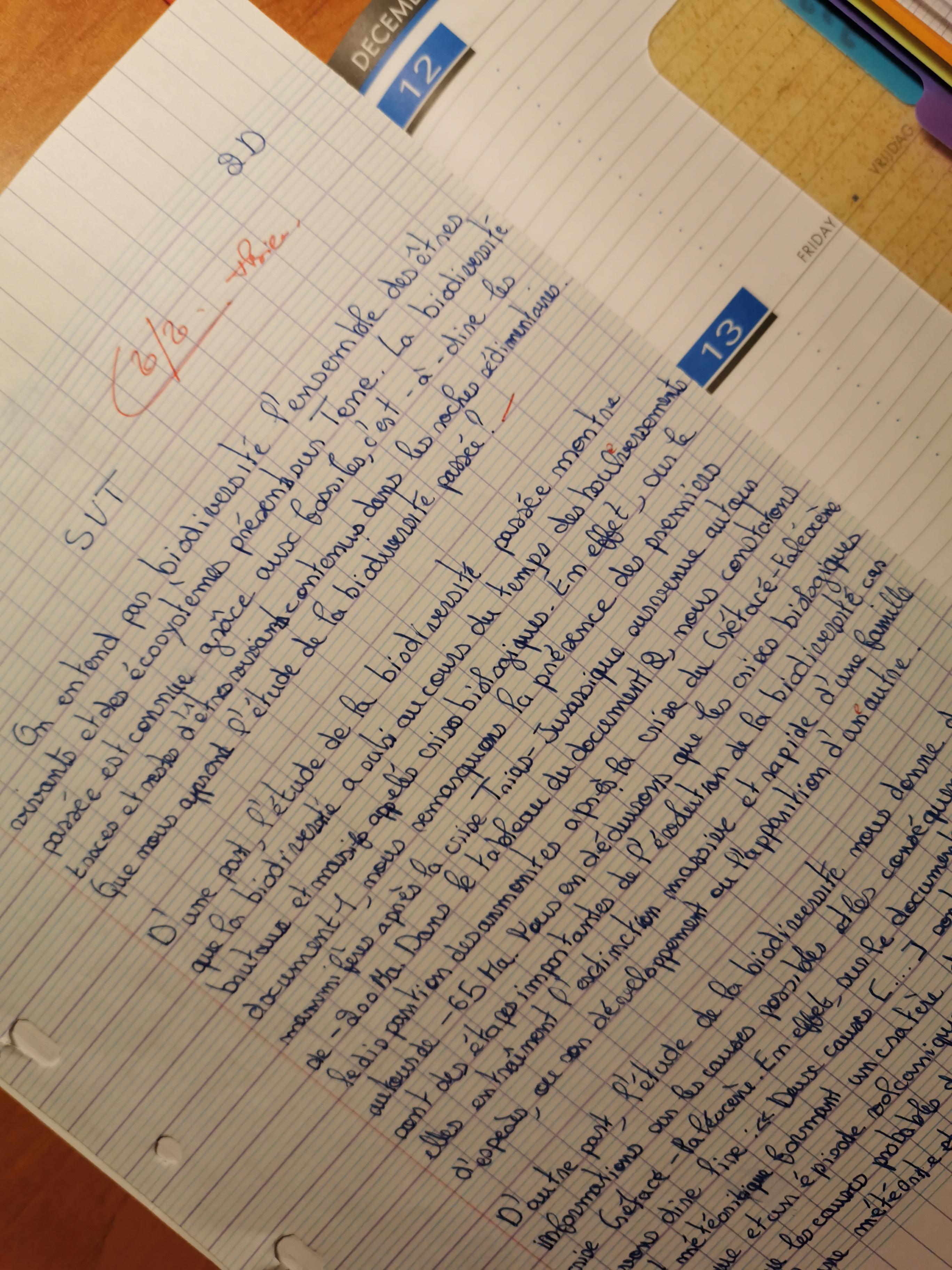 E-Bahut moîravita Posté(e) le 25 novembre 2019 E-Bahut Signaler Posté(e) le 25 novembre 2019 Il y a 19 heures, maël - missme a dit : Bonjour. Je me lance histoire de ne pas rendre copie blanche ! Pouvez-vous s'il vous plaît me corriger les fautes d'orthographe, la syntaxe etc. Je prends aussi vos suggestions pour améliorer mon texte argumentatif . On entend par biodiversité l'ensemble des êtres vivants et des écosystèmes présents sur Terre. La biodiversité passée est connue (pas de -s)grâce aux fossiles, que sont les traces et restes d'êtres vivants contenus dans les roches sédimentaires. Que nous apprend l'étude de la biodiversité passée ? D'une part, l'étude de la biodiversité passée montre que la biodiversité a subi au cours du temps des bouleversements brutaux et massifs appelés crises biologiques. En effet, sur le document 1, nous remarquons la présence des premiers mammifères après la crise Trias-Jurassique survenue autour de - 200 Ma. Dans le tableau du document 2, nous constatons la disparition des ammonites après la crise du Crétacé- Paléocène survenue autour de -65 Ma. Nous en déduisons que les crises biologiques sont des étapes importantes de l'évolution de la biodiversité car elles entraînent l'extinction massive et rapide d'une famille d'espèces, ou son développement ou l’apparition d'une autre. D'autre part, l'étude de la biodiversité nous donne des informations sur les causes possibles et les conséquences de la crise Crétacé-Paléocène. En effet, sur le document 3, nous pouvons lire : «Deux causes […] sont avancées : un impact météoritique formant un cratère de 200 km de diamètre au Mexique et un épisode volcanique intense en Inde.». Nous comprenons que les causes probables de cette crise pourraient être la chute d'une météorite et une éruption volcanique importante. De plus, dans le document 3, nous lisons que «la crise Crétacé-Paléocène a entraîné une extinction massive : 76% des espèces marines, ainsi que de très nombreuses espèces terrestres, ont disparu". Nous en déduisons qu'à cause d'événements géologiques exceptionnels à l'origine de perturbations intenses des milieux conditions de vie, ces espèces ne peuvent plus s'adapter a leur environnement et disparaissent de la surface de la Terre. Nous lisons aussi dans le document 3, " Certaines espèces notamment prédatrices ce sont éteintes": il s'agit essentiellement des dinosaures ,gros prédateurs, dont l'extinction massive a permis à d'autres espèces, comme les mammifères, de prospérer. Ainsi, nous pouvons dire que les causes probables de la crise Crétacé-Paléocène sont dues à des événements géologiques tels qu'un impact météoritique et une éruption volcanique intense provoquant des bouleversements des écosystème et engendrant en particulier l’extinction massive des dinosaures suivie de la diversification des mammifères. En conclusion finale, nous pouvons dire que l'étude de la biodiversité passée montre combien la biodiversité a changé au cours des temps géologiques : les êtres vivants d'hier ne sont plus ceux d'aujourd'hui. Merci Mieux vaut tard que jamais ! Bonne chance .