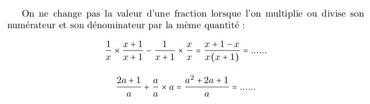 K€ntyn Posté(e) le 6 janvier 2020 Signaler Posté(e) le 6 janvier 2020 Bonjour, Je suis actuellement en 3ème et en math, la professeur nous à demander de faire 2 exercices qui sont de prouver des égalités mais je ni arrive pas !!!!!! Je vous mets ci-joint et ci-dessous les deux exercices Pour le 56, j'ai commencé a trouvé J'ai remarqué qu'il y avait une identités remarquable : (a+1)2 je l'ai donc développer : (a+1)2/a =(a2+2xax1+12)/a =(axa+2a+1)/a Et a partir de là je suis coincé !!! Merci d'avance pour votre aide