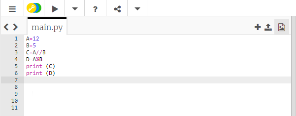 maël/missme Posté(e) le 12 janvier 2020 Auteur Signaler Posté(e) le 12 janvier 2020 D'accord j'essaie. J'ai fait l'exercice 4 Exercice 4 Ecrire un programme où l'on saisit deux nombres entiers naturels au départ et où l'on obtient le quotient et le reste de la division euclidienne de ces deux nombres en sortie. Programme Affecter à A la valeur 12 Affecter à B la valeur 5 Affecter à C la valeur A//B Affecter à D la valeur A%B Print (C) Print (C) J'ai encore 2 autres exercices mais je reviens à l'exercice 3 avant (je poste mes résultats) Merci