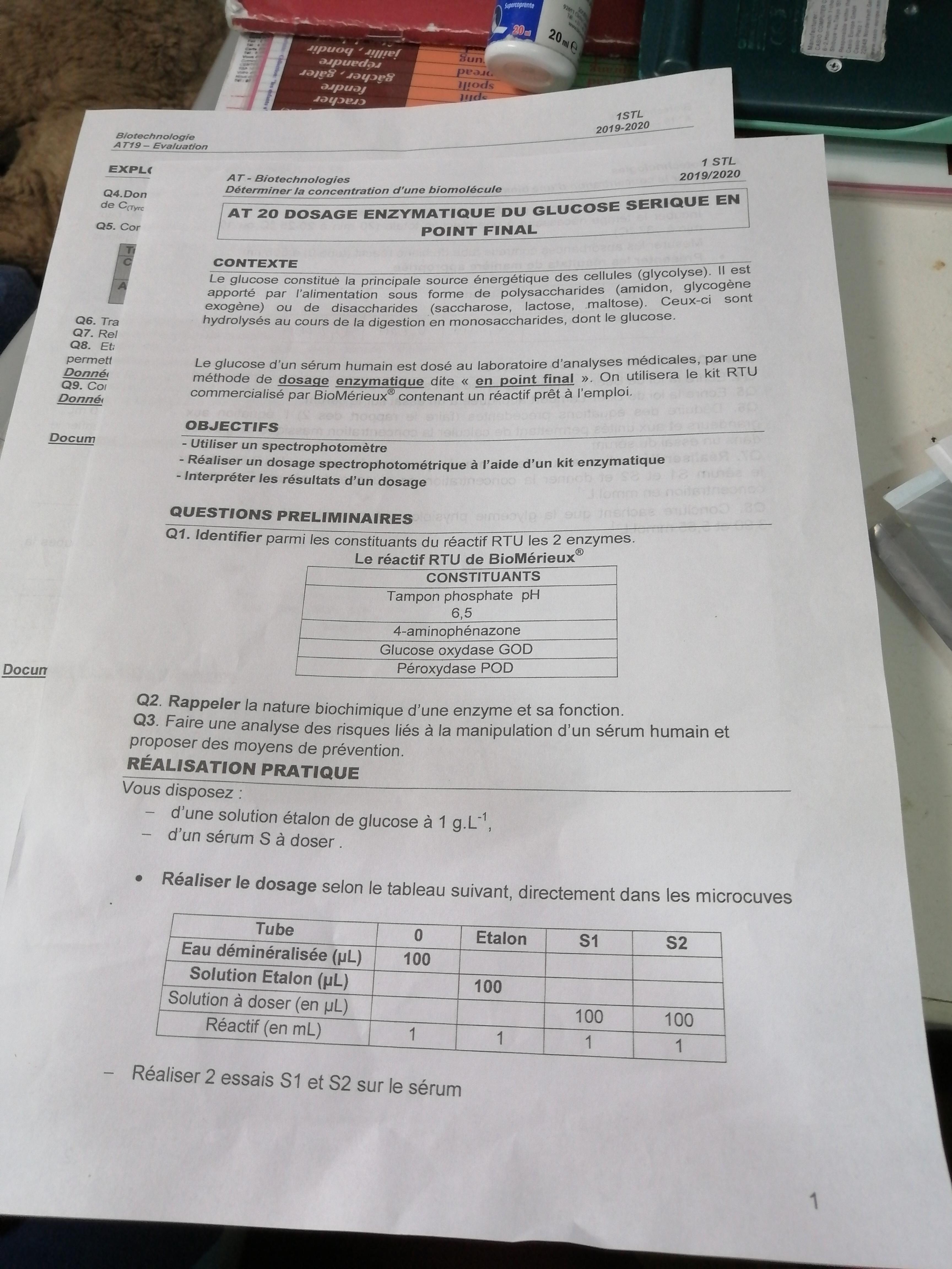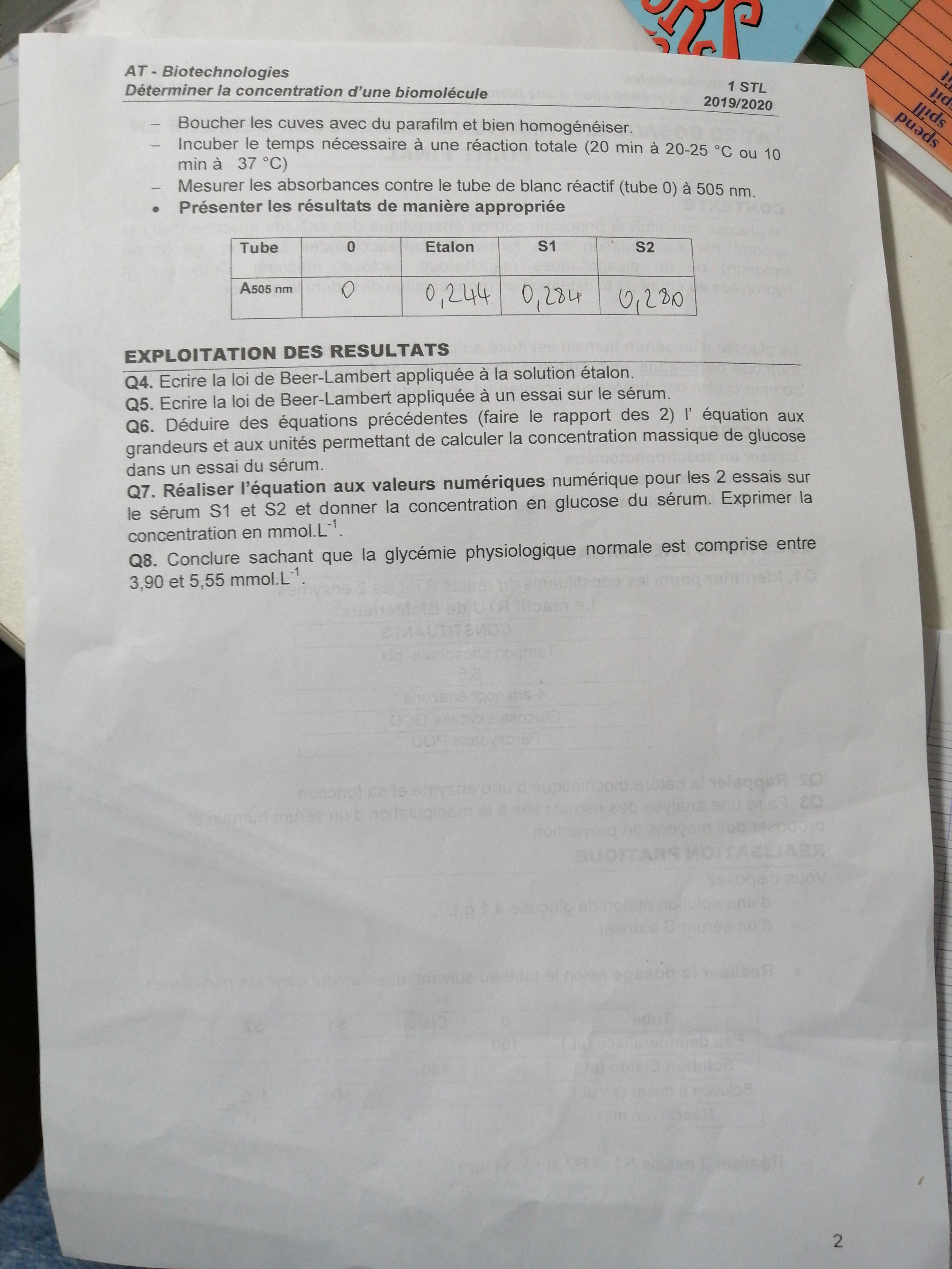 E-Bahut Barbidoux Posté(e) le 13 février 2020 E-Bahut Signaler Posté(e) le 13 février 2020 L'absorbance est proportionnelle à la concentration Solution étalon Cm(glucose)=(1/180) ==> facteur de dilution 1/11 ==> A=0.244 Solution inconnue Cmi(glucose)=? ==> facteur de dilution 1/11 ==> Amoy=0.282 ==> Cmi(glucose)=(1/180) *0.288/0.244=6.56 mmol/l