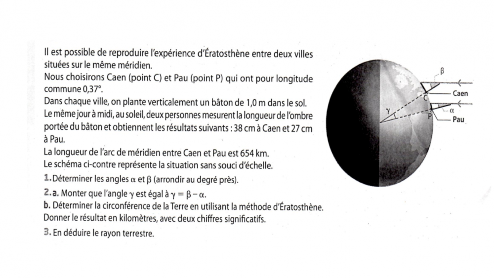 Oui, mais ce n'est pas tout. On te demande la circonférence de la terre et le rayon. En plus, comme on veut des résultats avec 2 chiffres significatifs, il faut en donner au moins 2 pour γ.