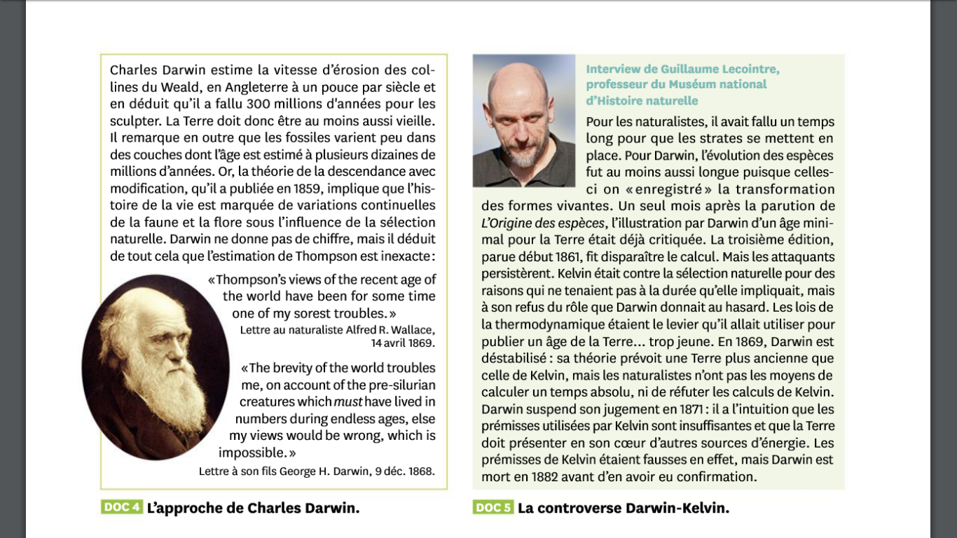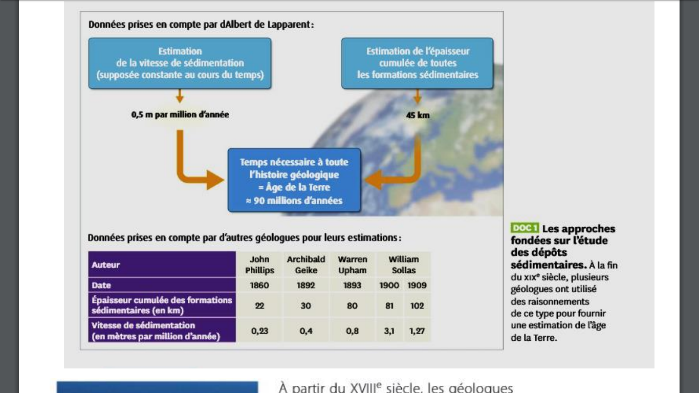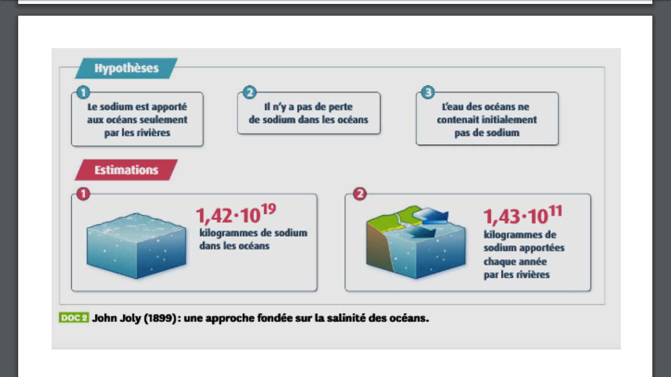 Lilly789 Posté(e) le 4 avril 2020 Signaler Posté(e) le 4 avril 2020 Bonsoir à tous j'aurais besoin d'aide pour cette activité que j'ai a faire, je ne comprend pas vraiment Voici les consignes: 1/A l’aide des informations, vous critiquerez les méthodes fondées sur l’étude des sédiments et de celles fondées sur la salinité des océans ; sources d’incertitude, hypothèses sujettes à discussion 2/ en quoi l’approche et les conclusions de Kelvin pouvaient sembler plus réalistes que celles de Darwin du point de vue de l’approche scientifique et du point de vue des débats au sein de la communauté scientifique dans la seconde moitié du XIXe siècle. je vous remercie d'avance.